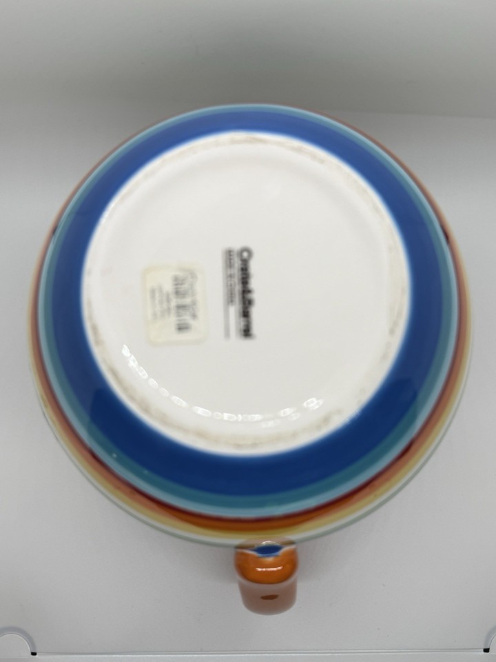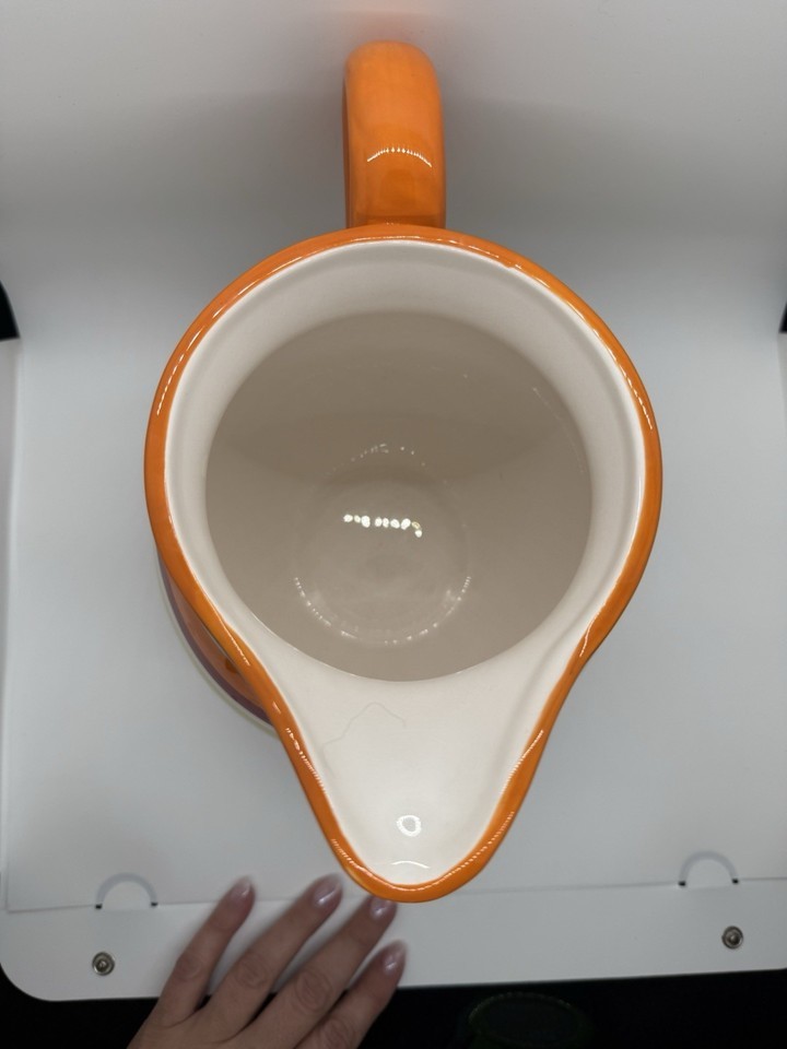 The Crate Barrel Pitcher is a festive and charming addition to any farmhouse-style kitchen. Made of ceramic with a glossy finish, this 8.5" jug features a vibrant rainbow stripe pattern that adds a pop of color to your home decor. With a 2 qt capacity, this pitcher is both functional and stylish, making it a perfect choice for serving beverages at the dinner table or in the dining area. It is a versatile piece that can easily be dressed up or down to suit any occasion.