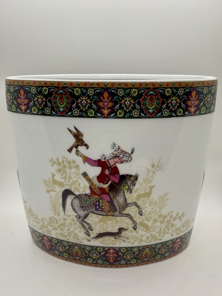 Tirschenreuth Bavaria Cavallo Porcelain Cachepot Planter – Horse & Falcon Scene
