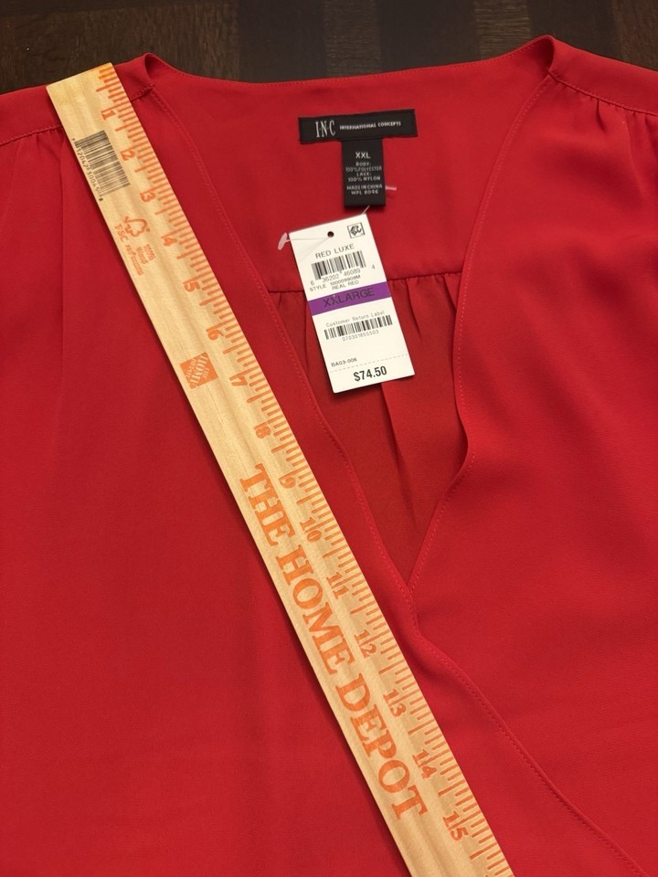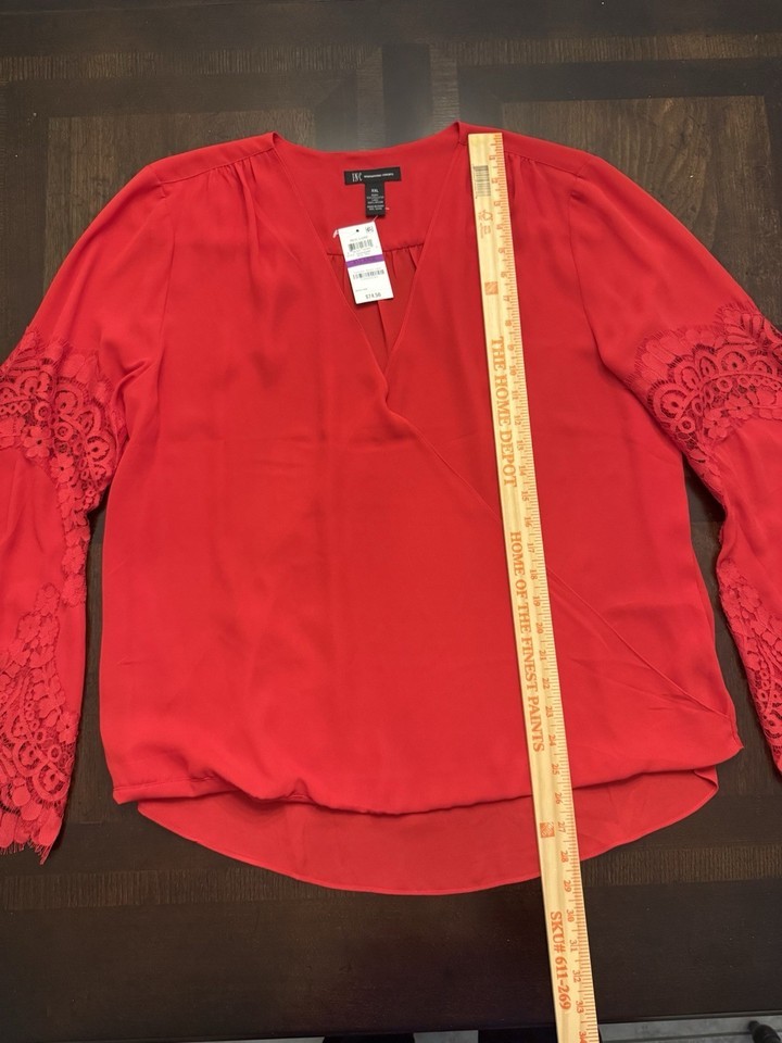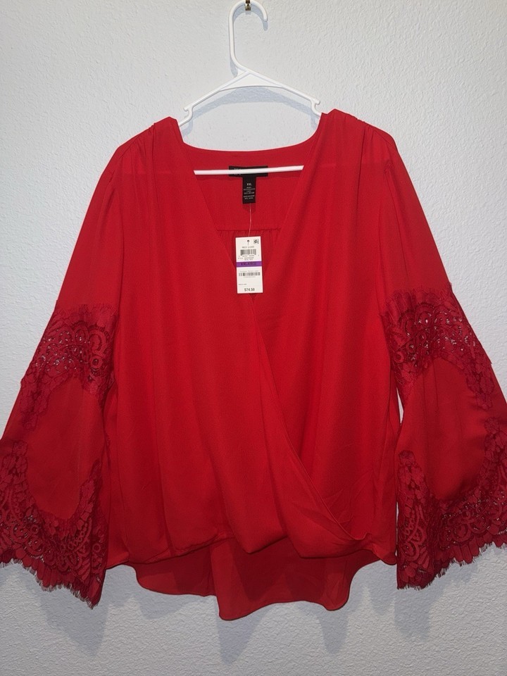 INC Red Lace Sleeve Blouse XXL NWT Faux Wrap and similar items