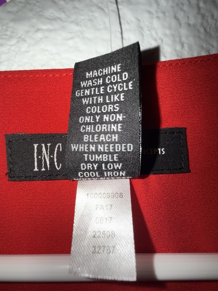 Turn heads in this striking ?Red Luxe? blouse by INC International Concepts, brand new with tags. Designed with an effortlessly flowy silhouette, this top features:
