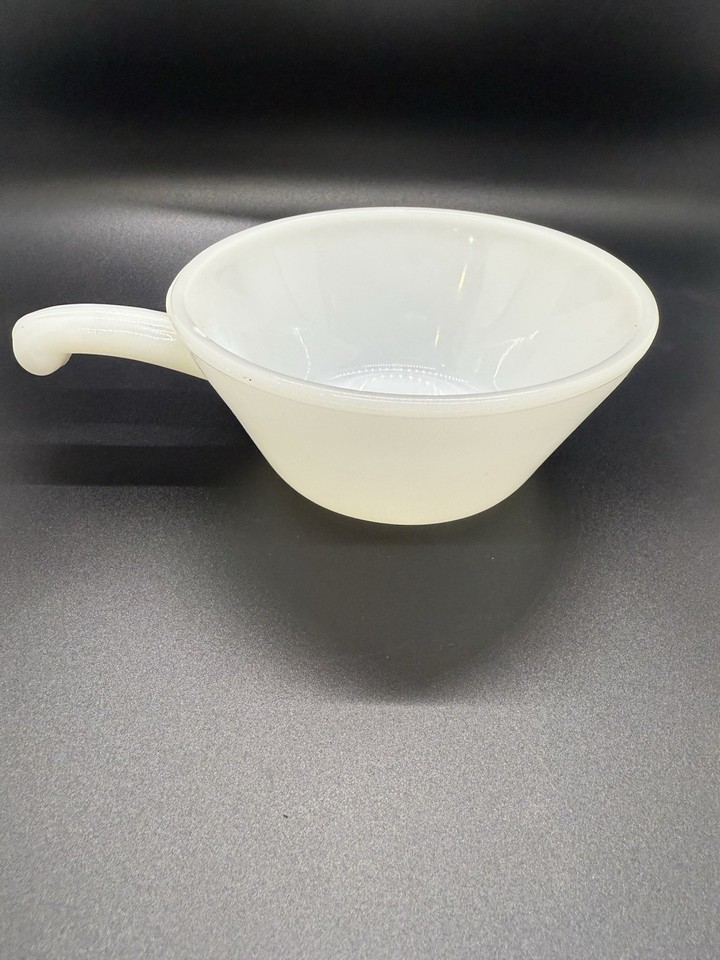 Vtg White Fire King Beehive Soup Bowl With Handle Ovenware 1950s Made In USA