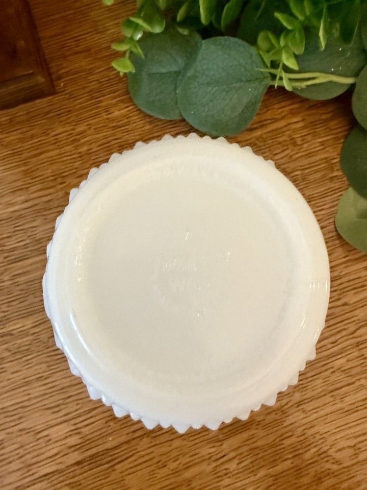 ? Fire-King hobnail planter with scalloped rim ? ideal for small plants, floral arrangements, or organizing makeup brushes and desk items.