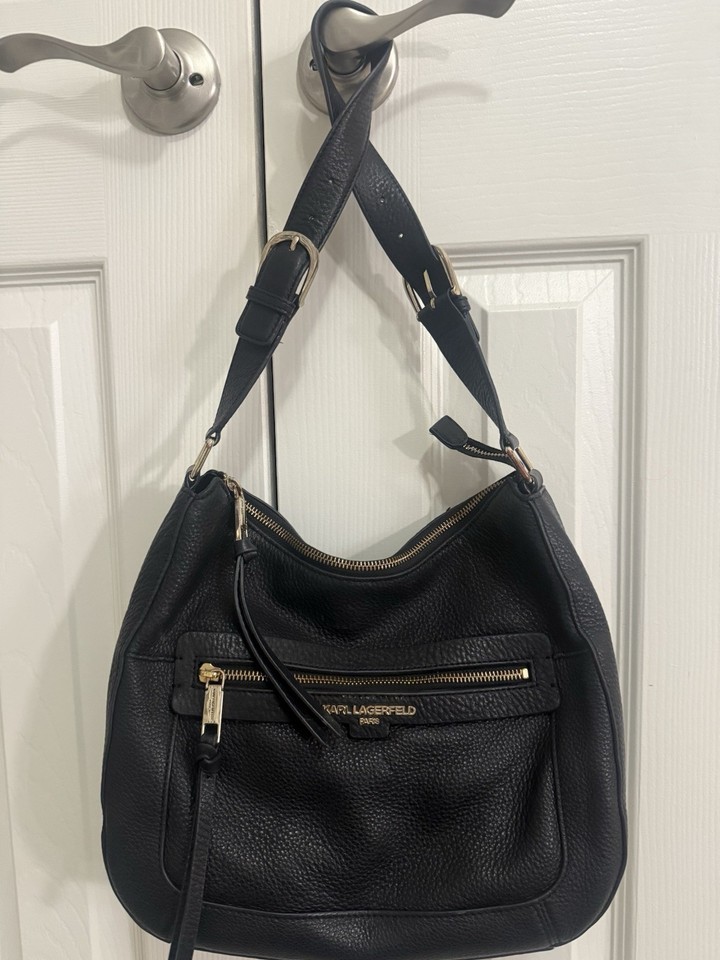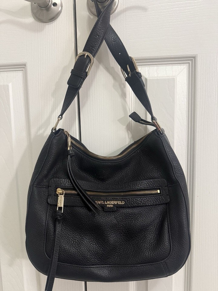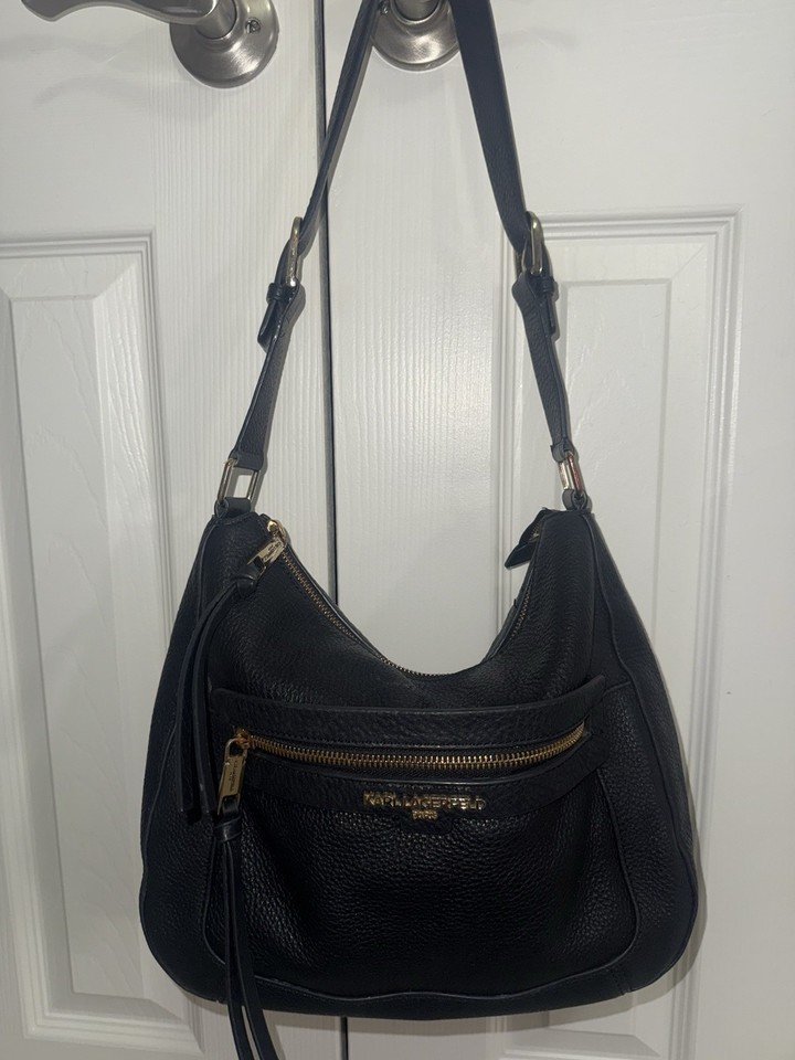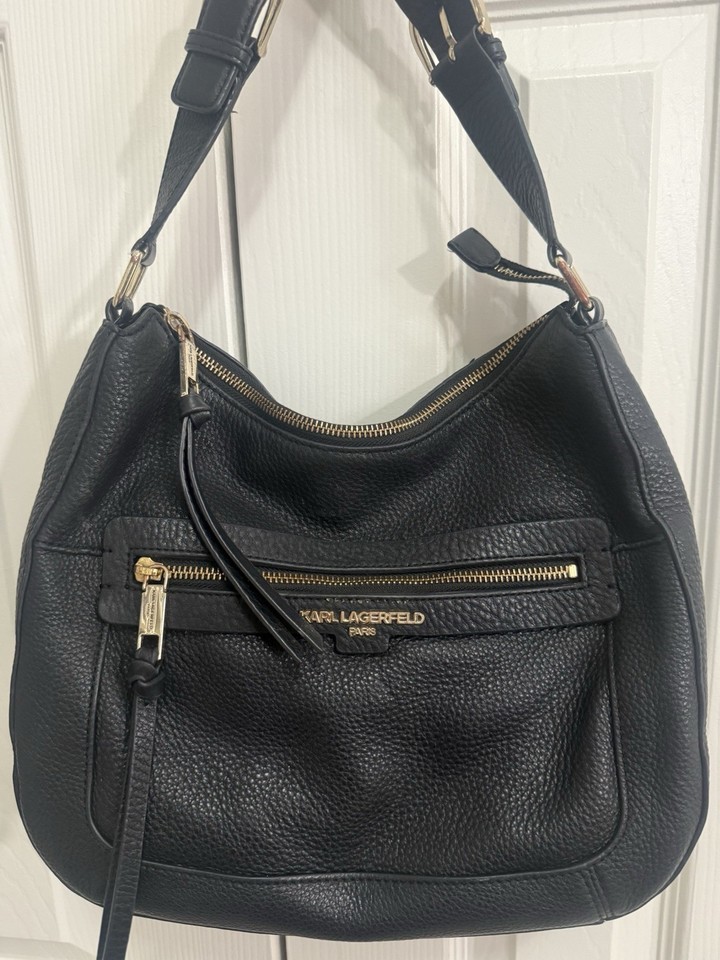 Karl Lagerfeld Black Pebbled Leather Shoulder Bag
