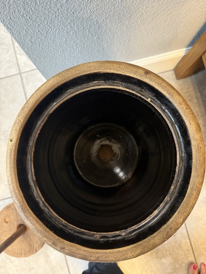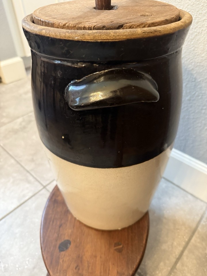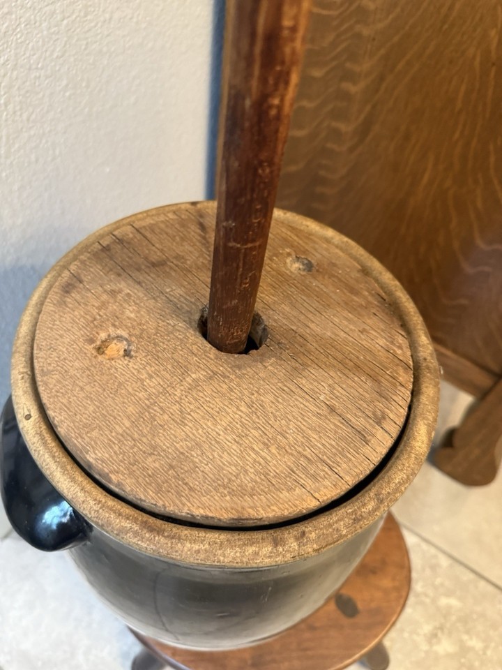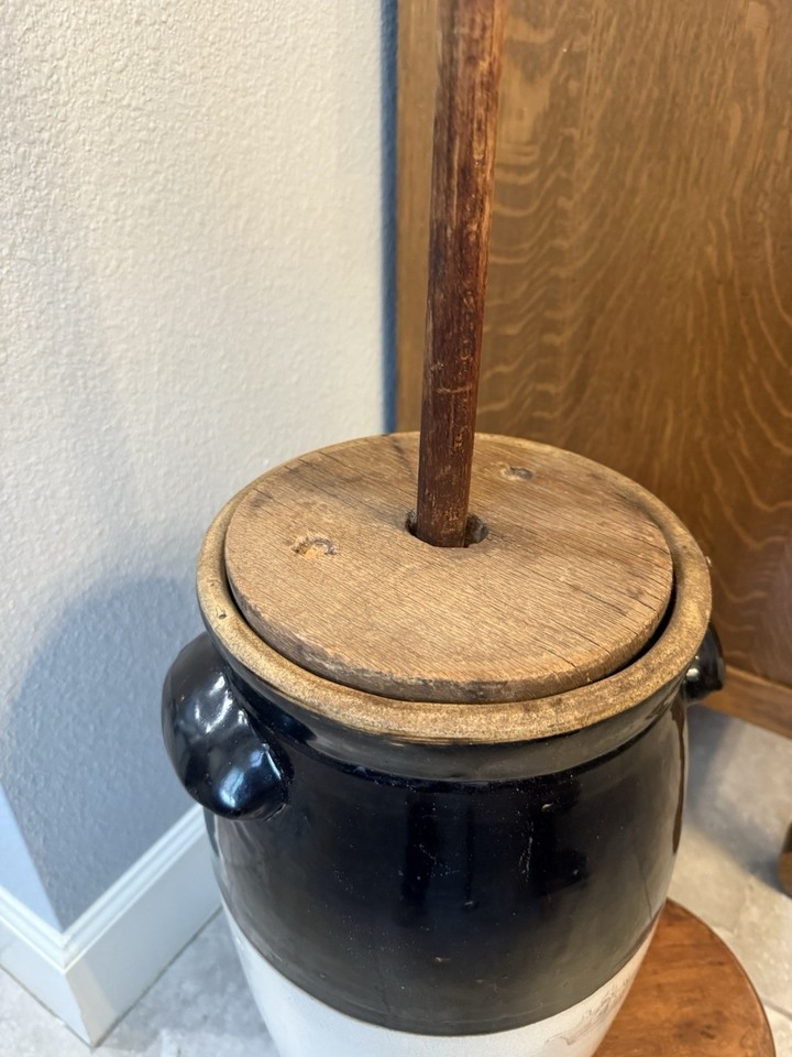 Dating from the early-to-mid 20th century, this piece tells the story of rural kitchens, family farms, and the slow craft of butter-making. Whether used as a decor piece in rustic, cottagecore, or vintage-styled interiors?or admired by collectors?this churn adds warmth, history, and charm. Some age-related wear and crazing, consistent with authentic use.