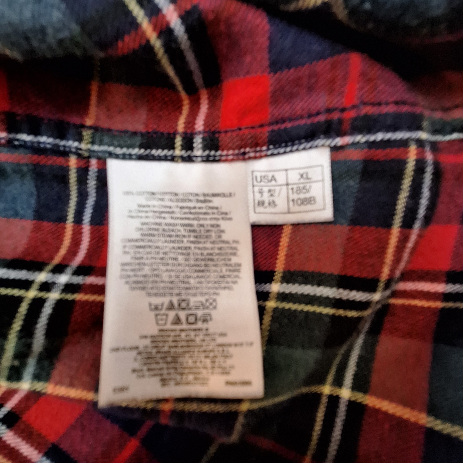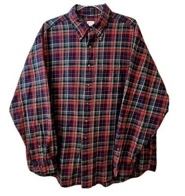 This Brooks Brothers Flannel Shirt in men's XL features a classic blue, red, and green plaid pattern, making it perfect for travel and casual occasions. Made of comfortable cotton flannel, this button-down shirt has a collared neckline and long sleeves, providing warmth during the winter, fall, and spring seasons. With a tagless design and easy care instructions, this shirt offers both style and convenience. The classic fit and preppy theme of this Brooks Brothers 346 shirt embody the brand's timeless and sophisticated style.