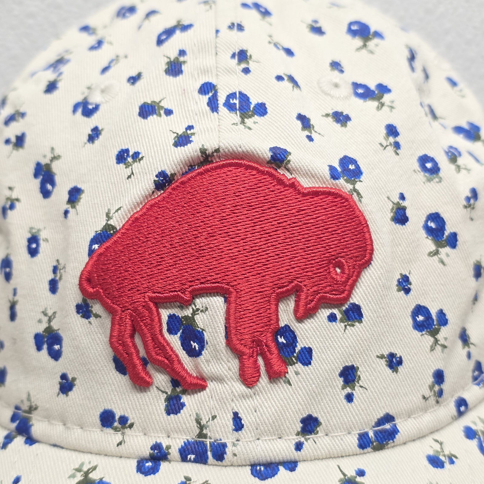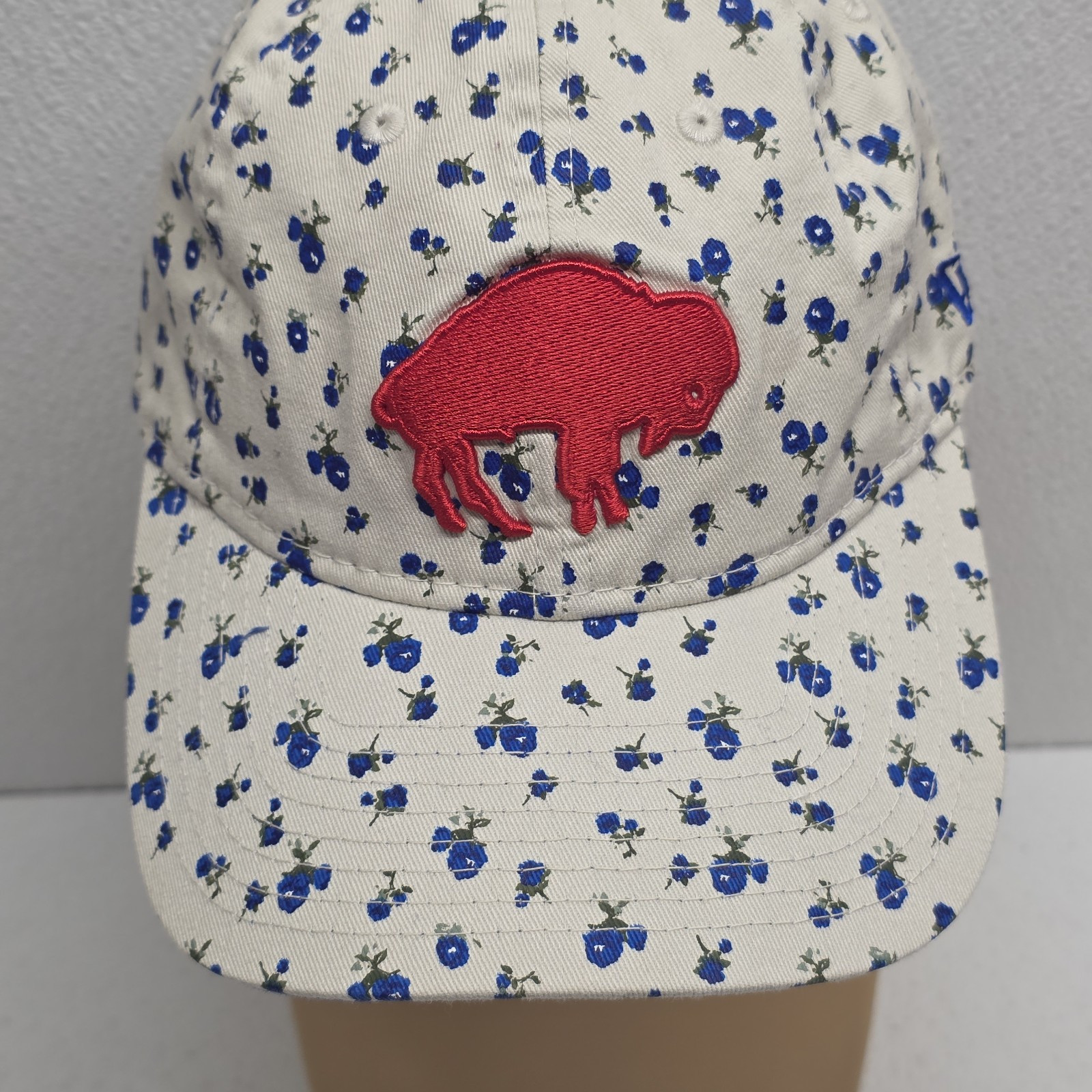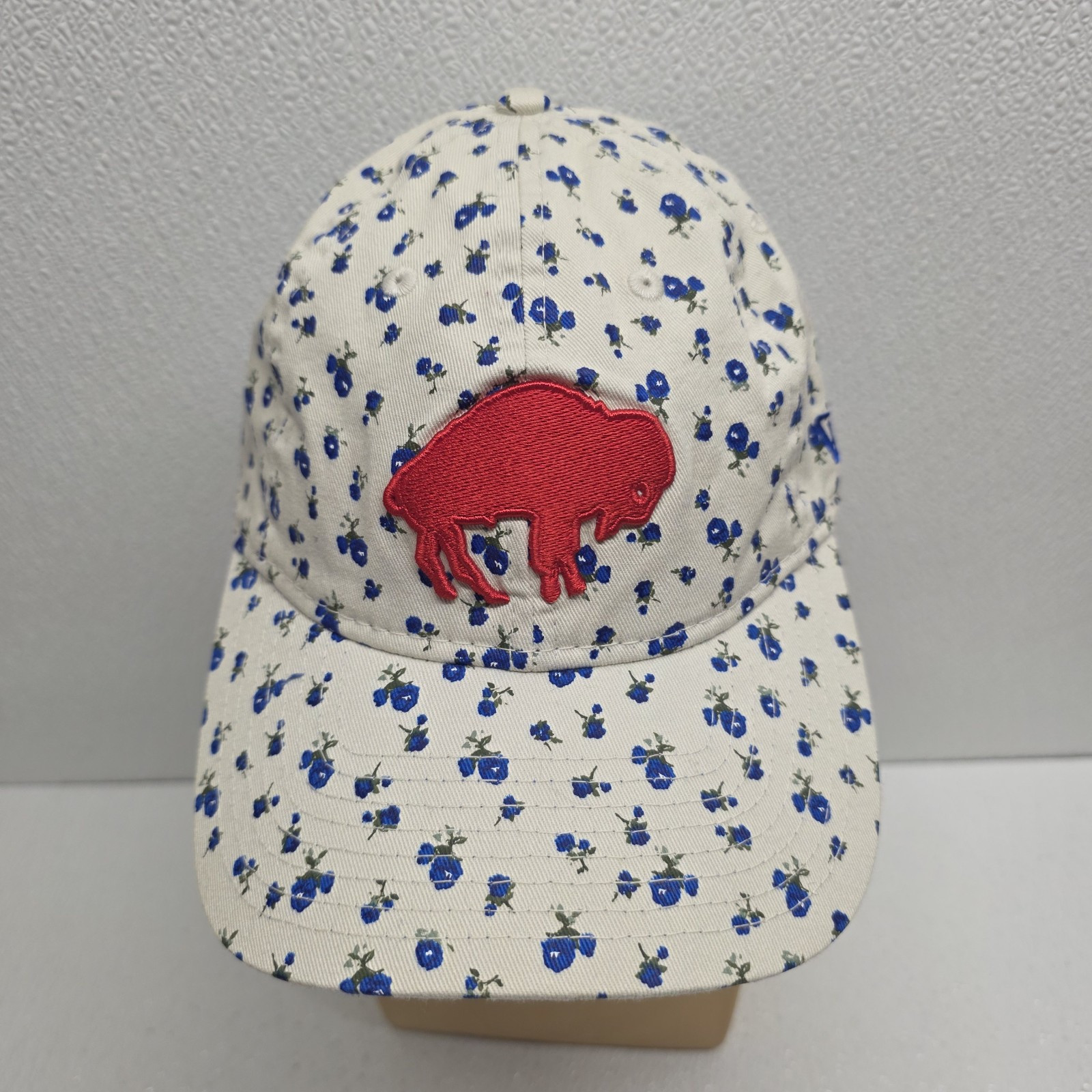 New Era 9twenty Historic Red Logo Buffalo Bills White Hat Womans Blue Floral Cap Adjustable. Images show actual item that will ship.