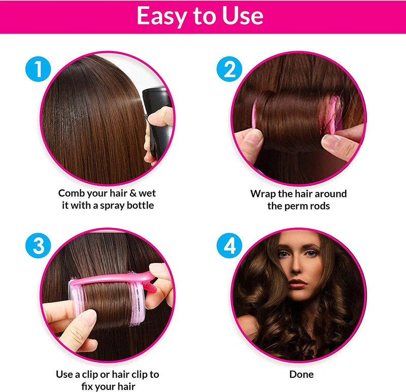 Save your hair from heat damage, keeps hair secure. No heat tool and chemical additives. You can wear these salon hairdressing curlers for makeup, cooking or bathing.