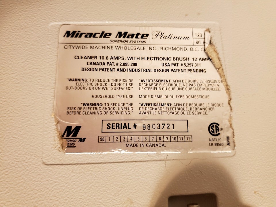 For immediate purchase is this Miracle Mate Platinum Replacement Vacuum Cleaner Motor Canister GUC. This canister vacuum was working, it is a well USED item, definite signs of use, scratches, dings, etc. We cleaned it out as best we can but it does have scratches, stains, as you might expect from a USED part. Cord has been repaired with electrical tape. Please make sure that this is compatible with your vacuum, we do NOT accept returns.