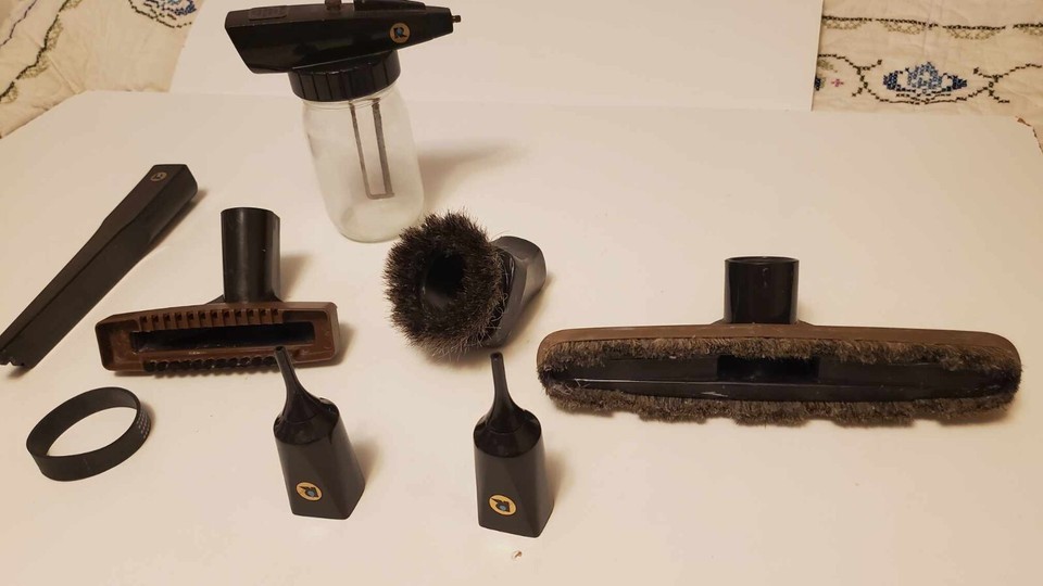 For immediate purchase is this Rainbow SE D4C Vacuum Cleaner Replacement Brush Tool Accessories Lot Bottle OEM. These are USED items which could act as a replacement for your machine. They have been used, show wear. We cleaned everything out as best we can but it will likely have some dust, light dirt as you might expect from a USED part. Please make sure that this is compatible with your vacuum, we do NOT accept returns.