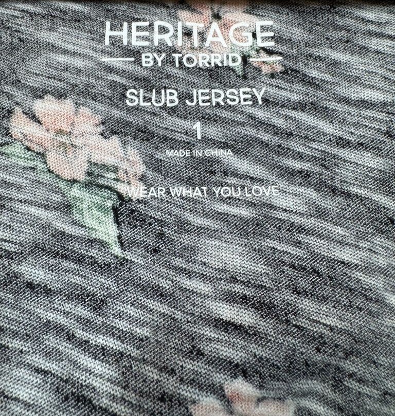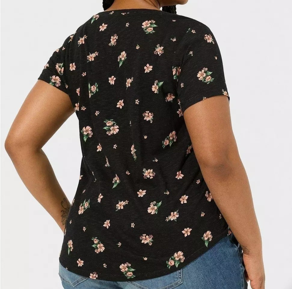 Torrid Heritage V-Neck Pocket Tee Slub Jersey Black Pink Floral Womens Size 1 1X