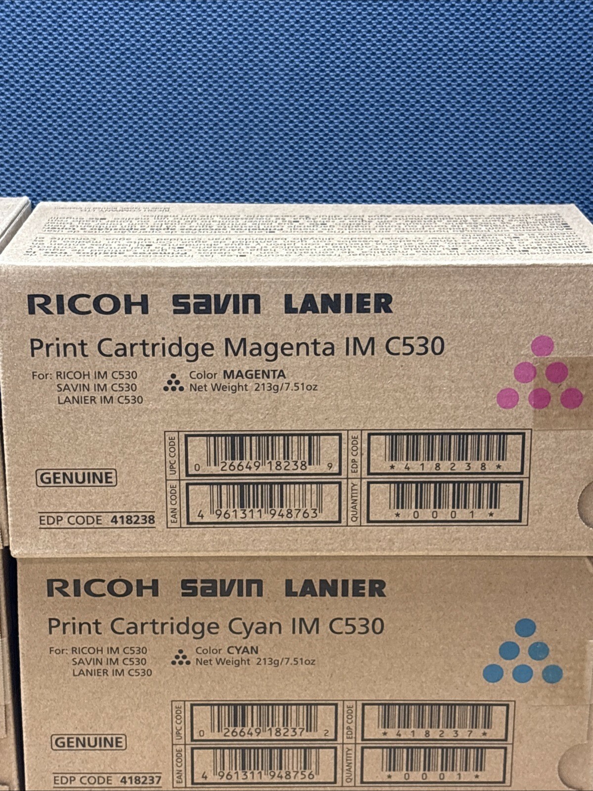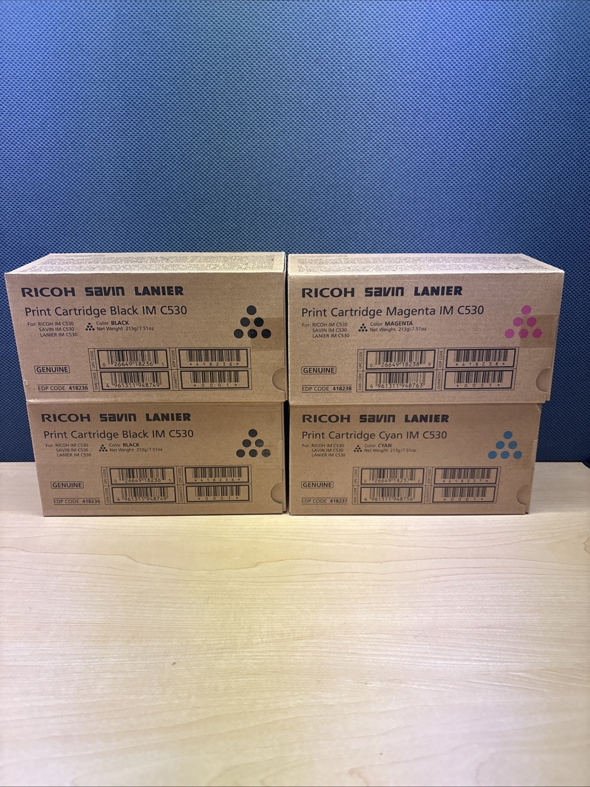LOT OF 4 GENUINE RICOH SAVIN LANIER 418236/418238/418237 (IM C530) TONER