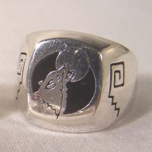 1 DELUXE HOWLING WOLF AT MOON NEW SILVER BIKER RING mens women's novelty ring