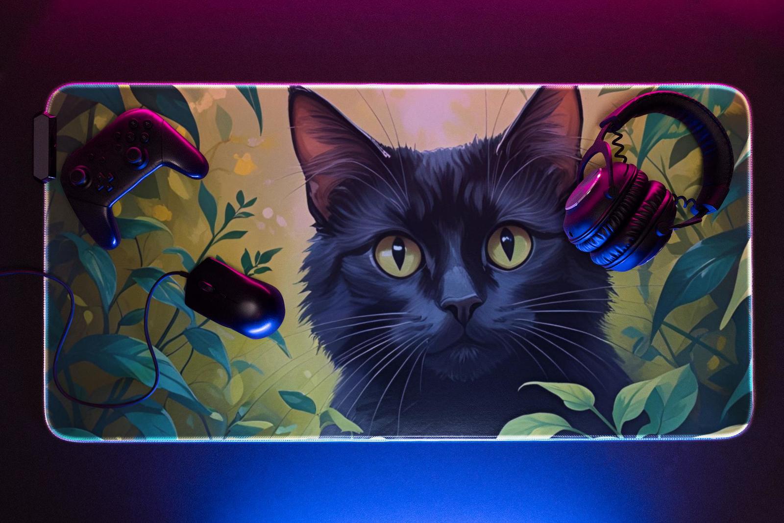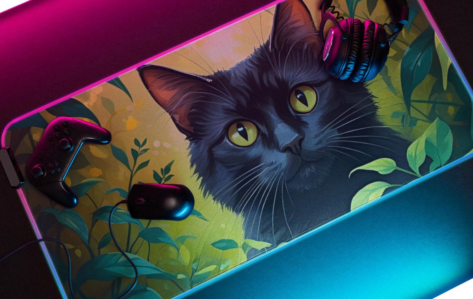 Black Cat Desk Mat, Cat Lover Gift, Home Office Decor, Gaming or Work Desk Acces