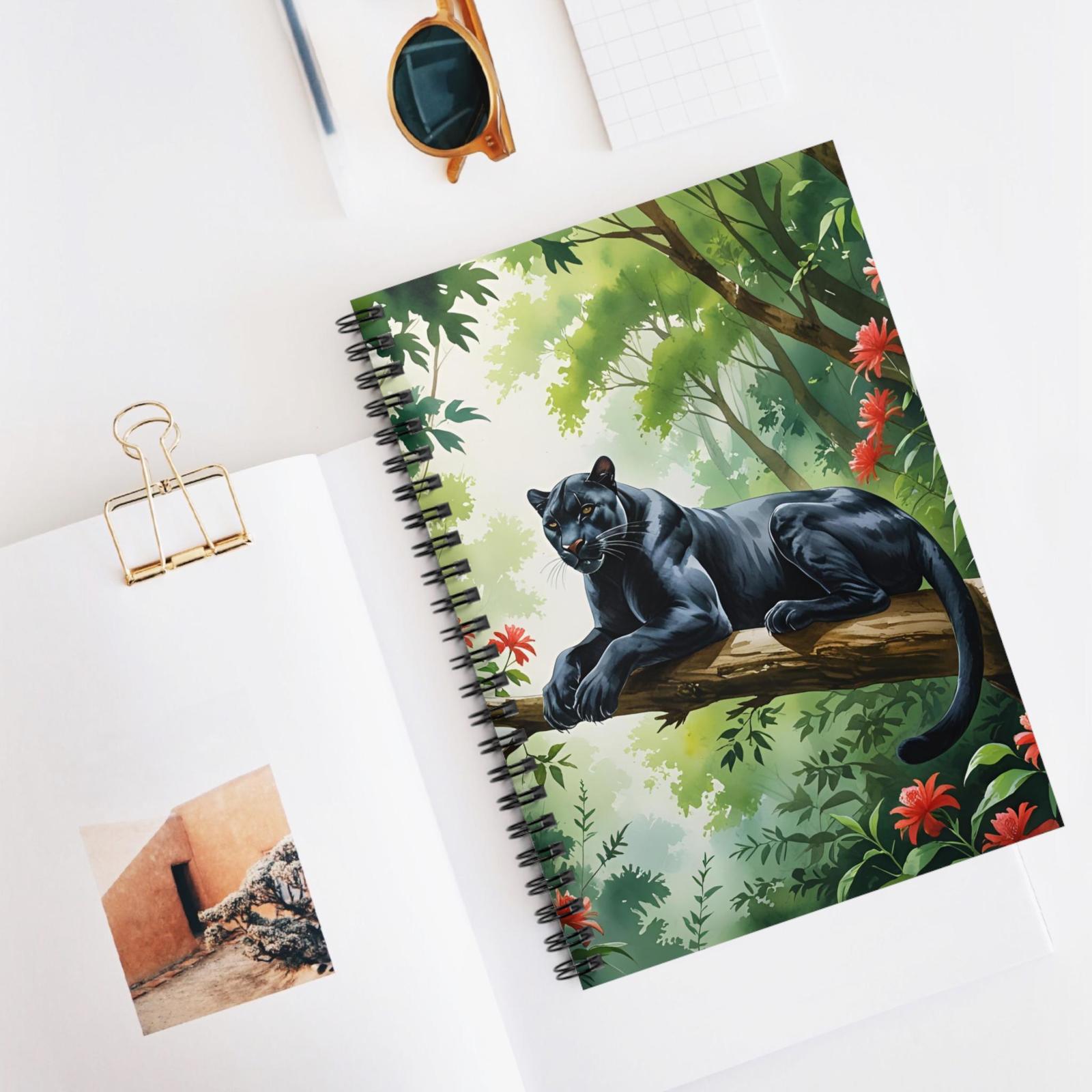 Dive into inspiration with this stunning Spiral Notebook, perfectly designed for anyone who loves to express their thoughts on paper. The enchanting cover features a beautifully illustrated black panther lounging amidst lush greenery, giving the notebook a captivating vibe that sparks creativity. Ideal for students, writers, artists, or anyone who enjoys journaling, this notebook blends functionality with stunning artistry. Whether you're jotting down ideas at home, sketching in a cafe, or planning your next adventure, this notebook is an elegant companion. It makes a thoughtful gift for birthdays, holidays, or even just to treat yourself. Celebrate your creativity this season with a piece that brings beauty to every page.