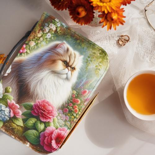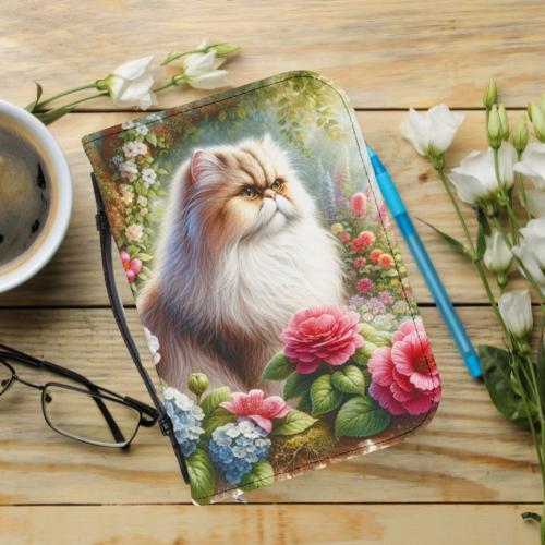 Floral Cat Bible Cover, Elegant Scripture Case, Gift for Cat Lovers, Christian J