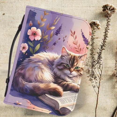 Whimsical Cat Bible Cover, Religious Gift, Cat Lover Accessory, Cute Book Cover