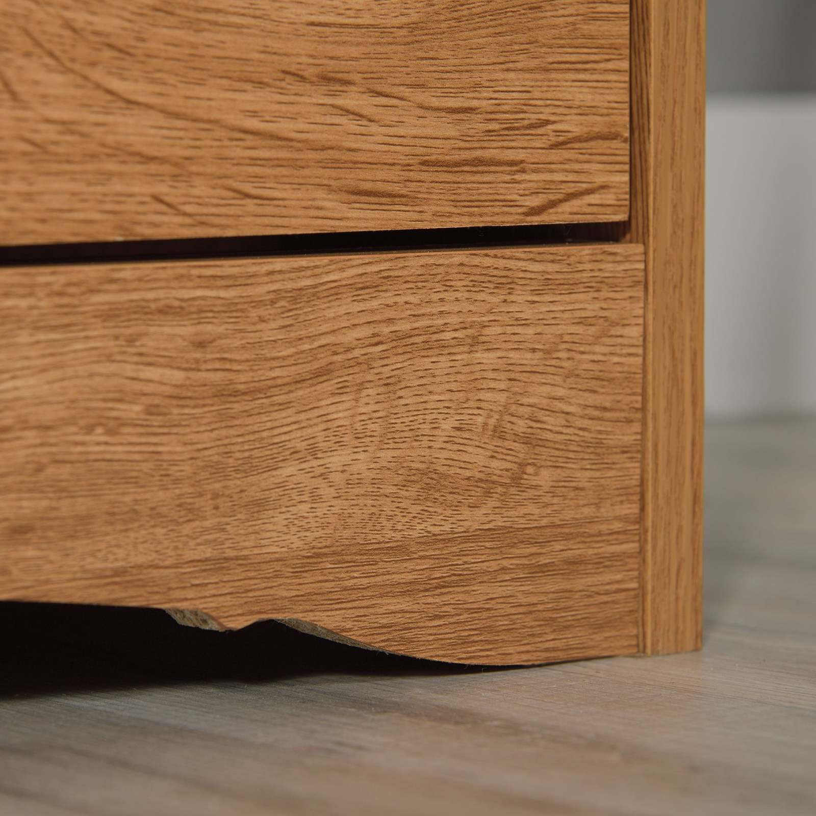 One smaller top drawer plus three larger bottom drawers for organized access