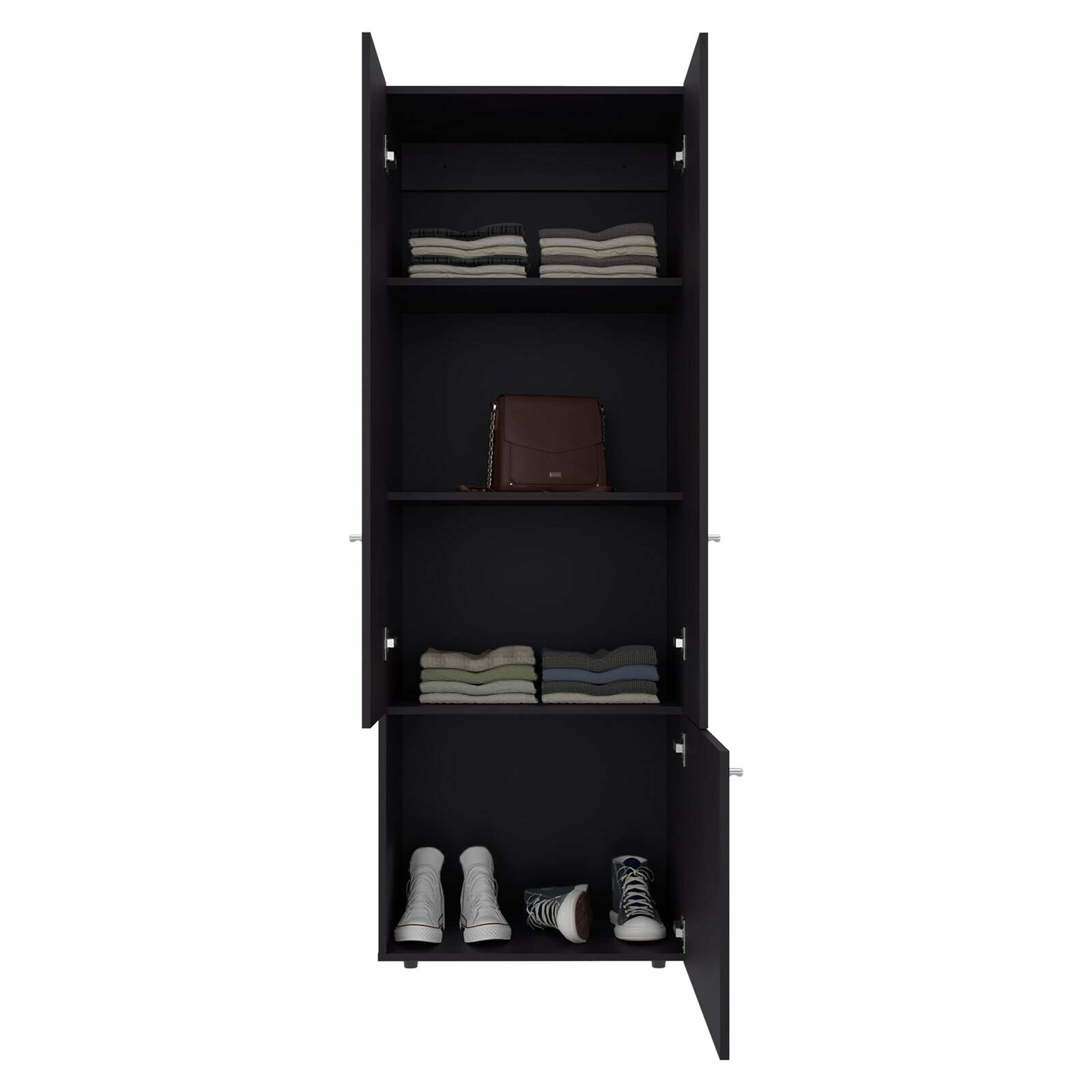 FM Furniture Tolleson 3-Door Wardrobe - 4 Shelves, Wenge Storage Armoire