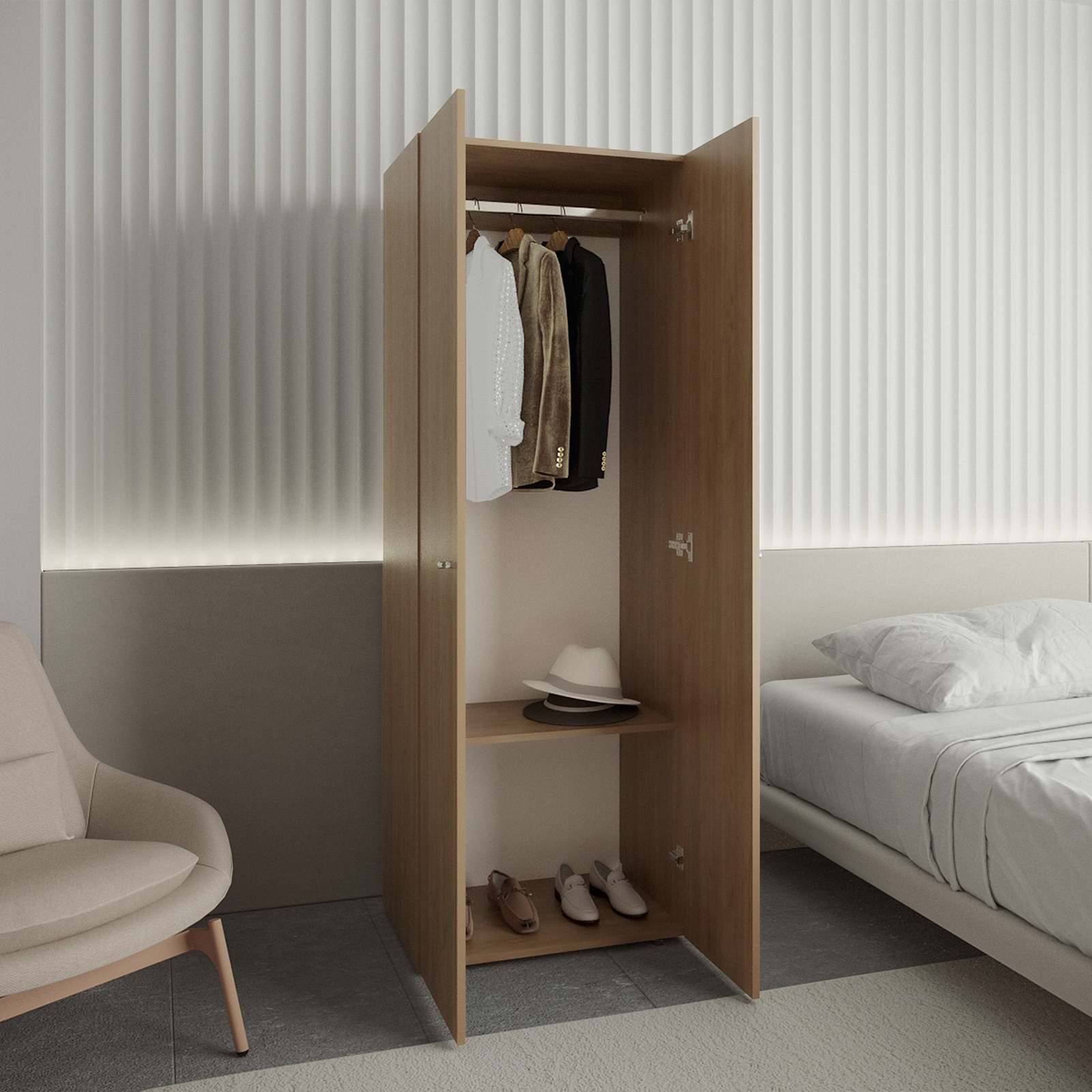 Modern 2-Door Closet Armoire System: Hanging Rod, Shelves, Oak