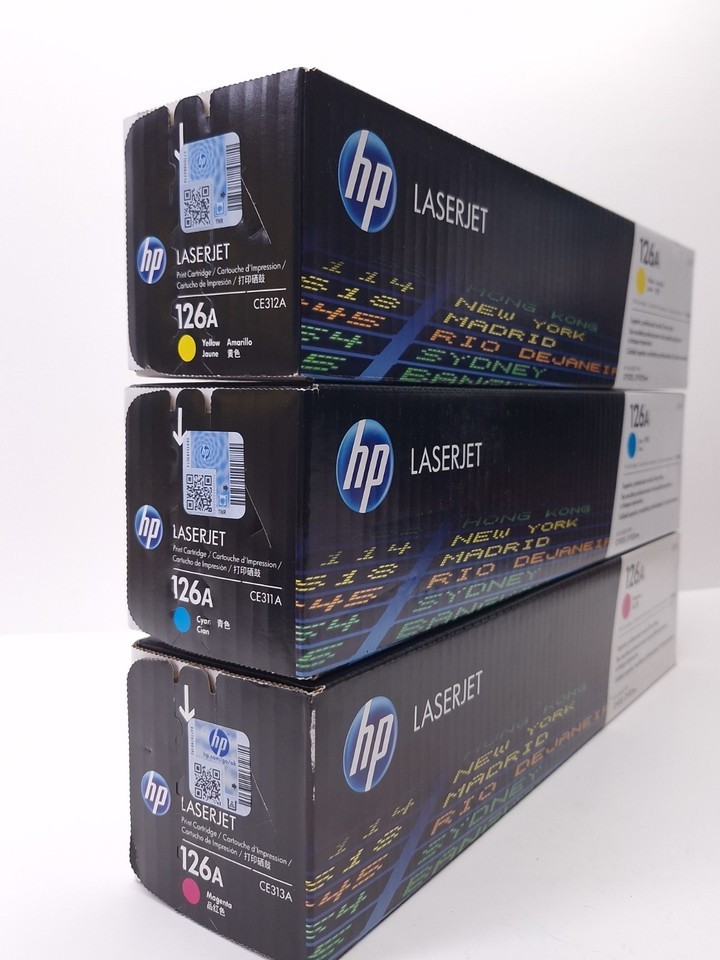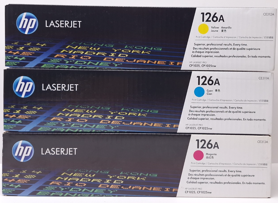 Set of New Sealed Genuine HP Color Laserjet Toner 126A Cyan Yellow Magenta