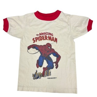 Vintage 1978 Marvel Spider-Man Ringer T Shirt Kids 6/7 Cotton Poly 70s Graphic
