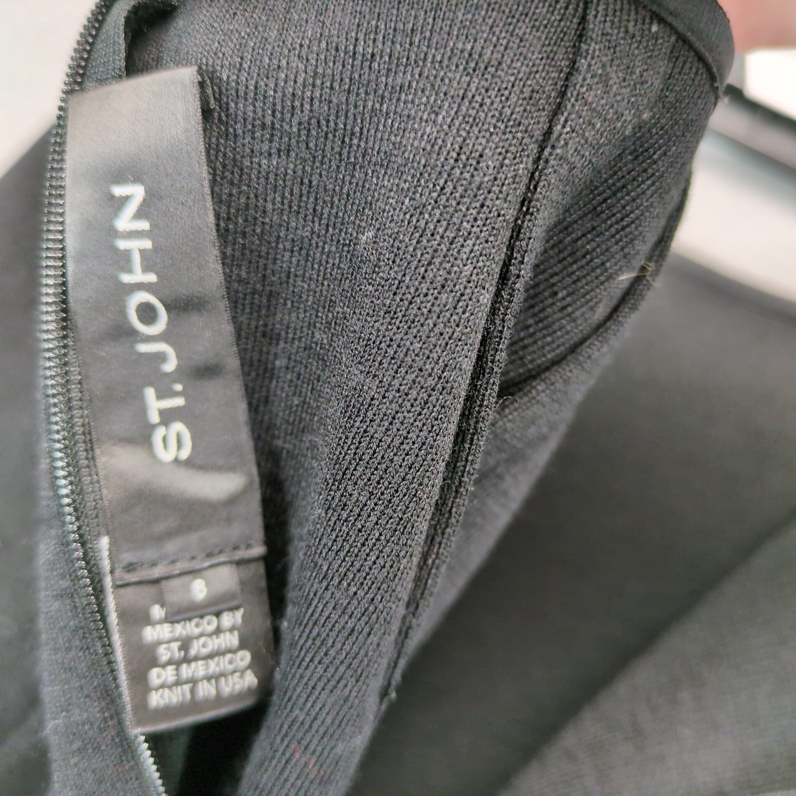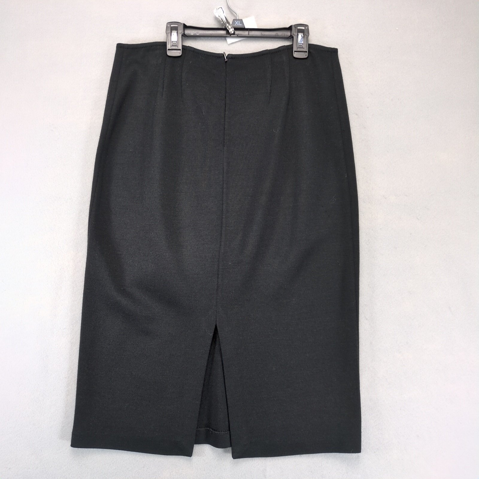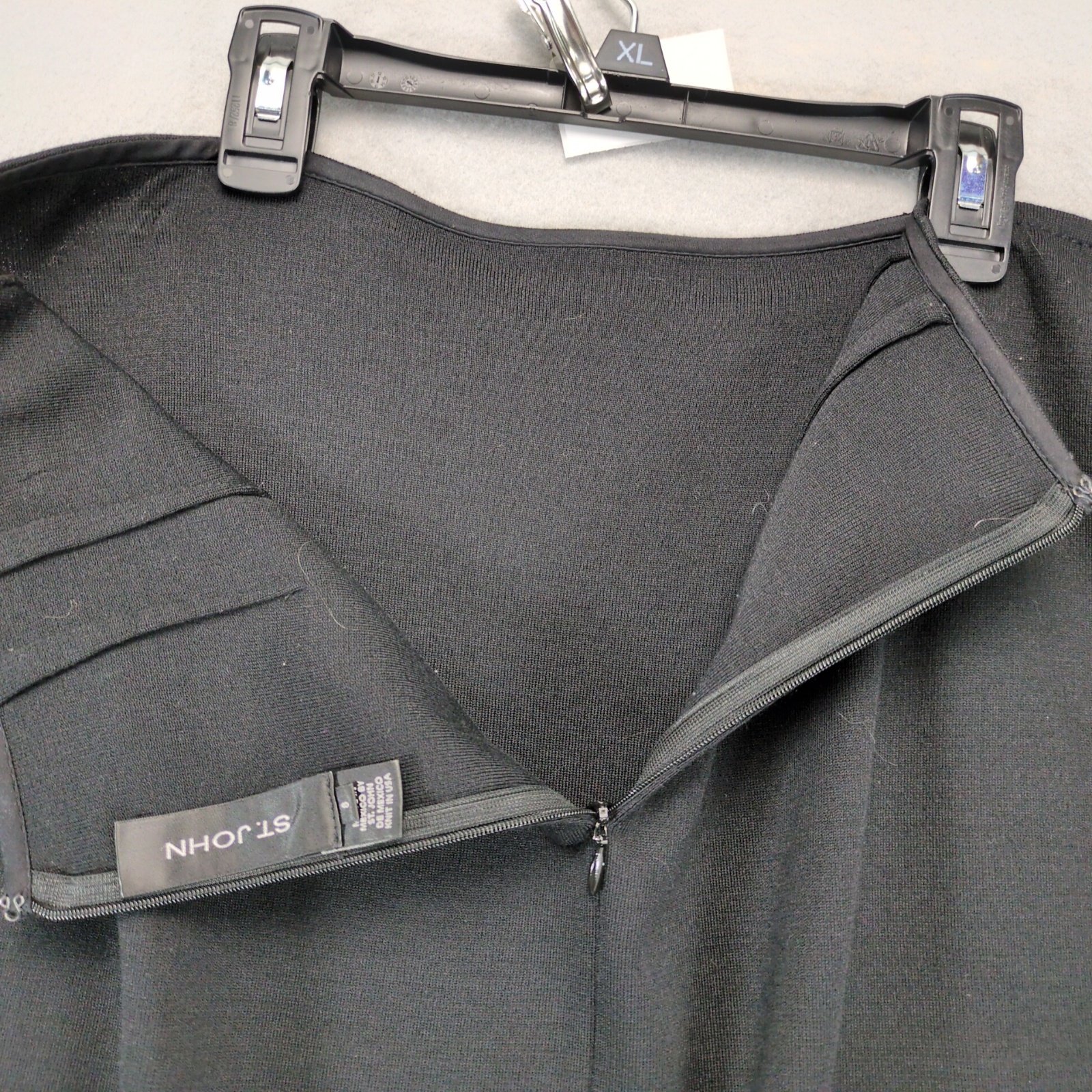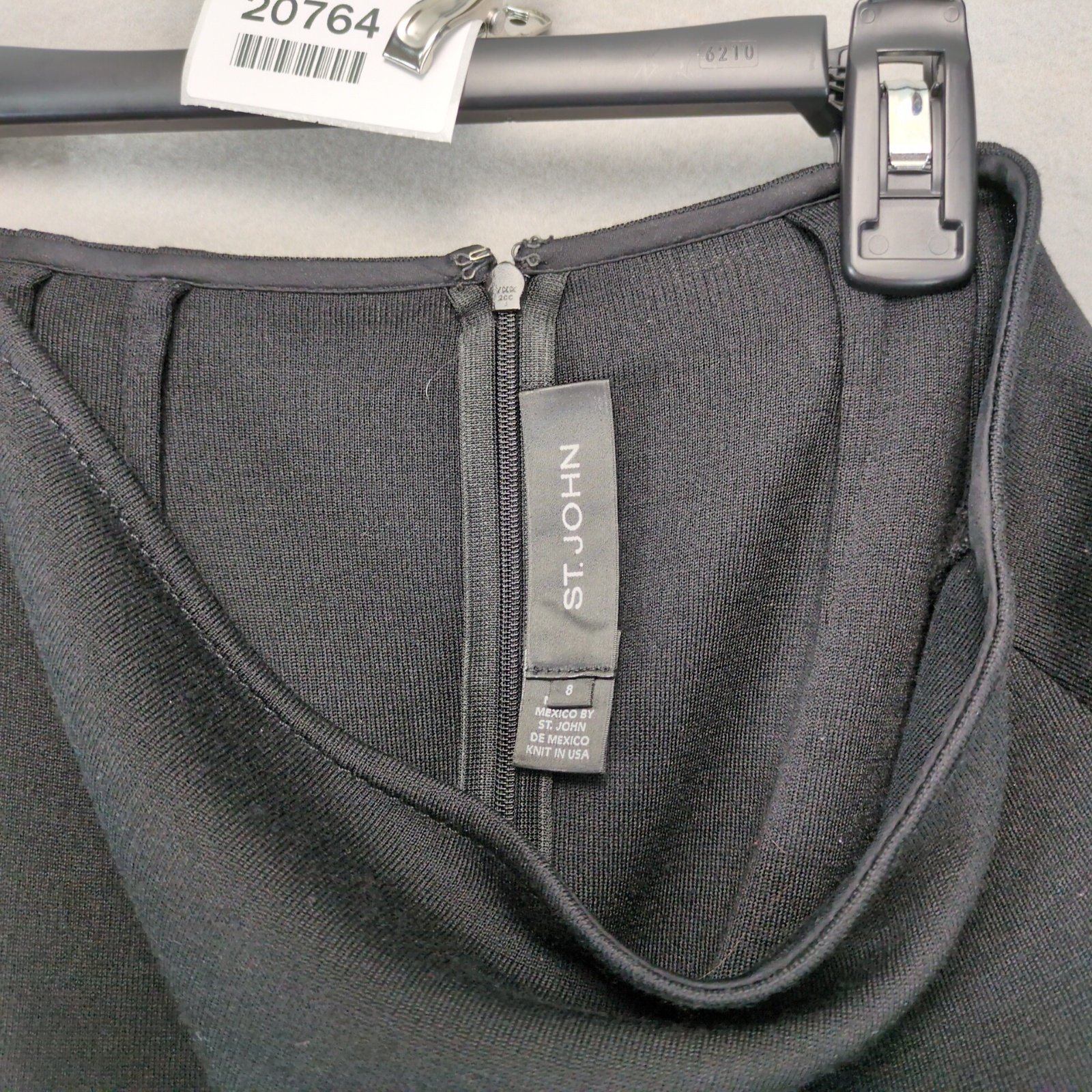 St John Straight Pencil Black Midi Skirt Size 8 Wool Blend 31"W 9" Slit Career