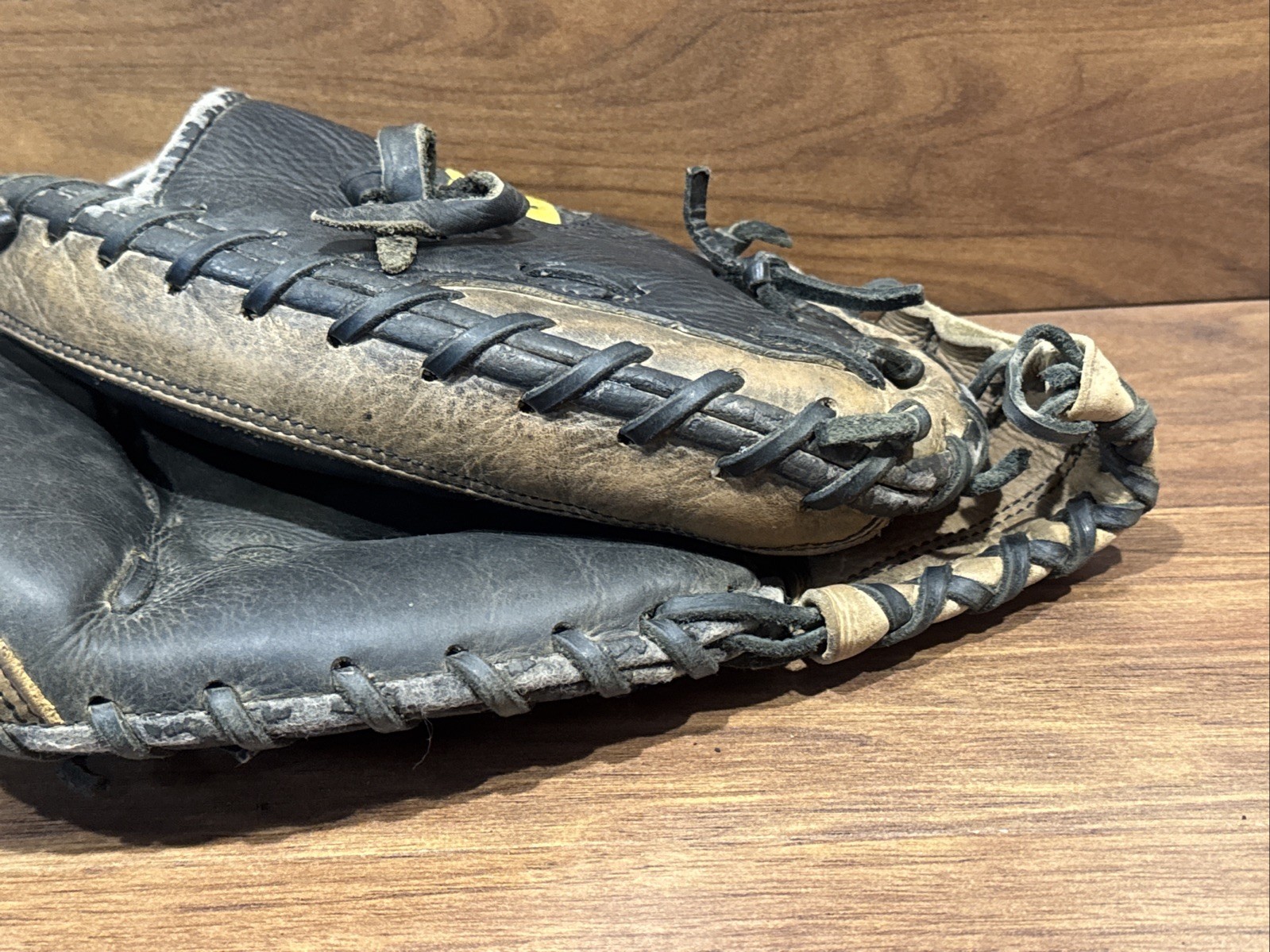 This glove needs the webbing restrung. The rest of the leather is in decent shape. The material that covers the edges of the leather has been worn off. You are able to see that in my pictures. But overall would clean up and make for a nice glove the padding is still really good in the palm as well asthe edges. Please look at my photos and ask questions before purchasing.