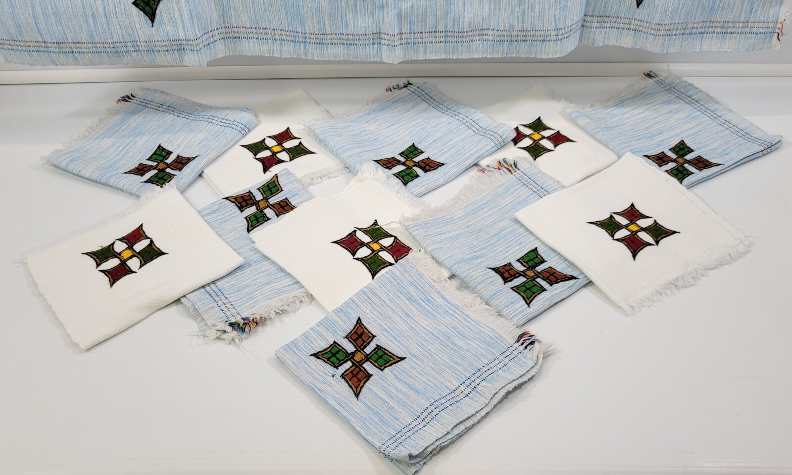 MM) Tilet Pattern Symbol Decorative Embroidered Fringed 11 Napkins Table Runner