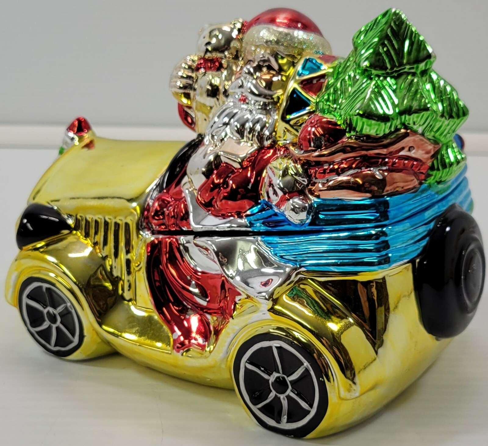 MM) Shiny Christmas Santa Claus Car Trinket Candy Dish Holder with Lid B.I. Inc