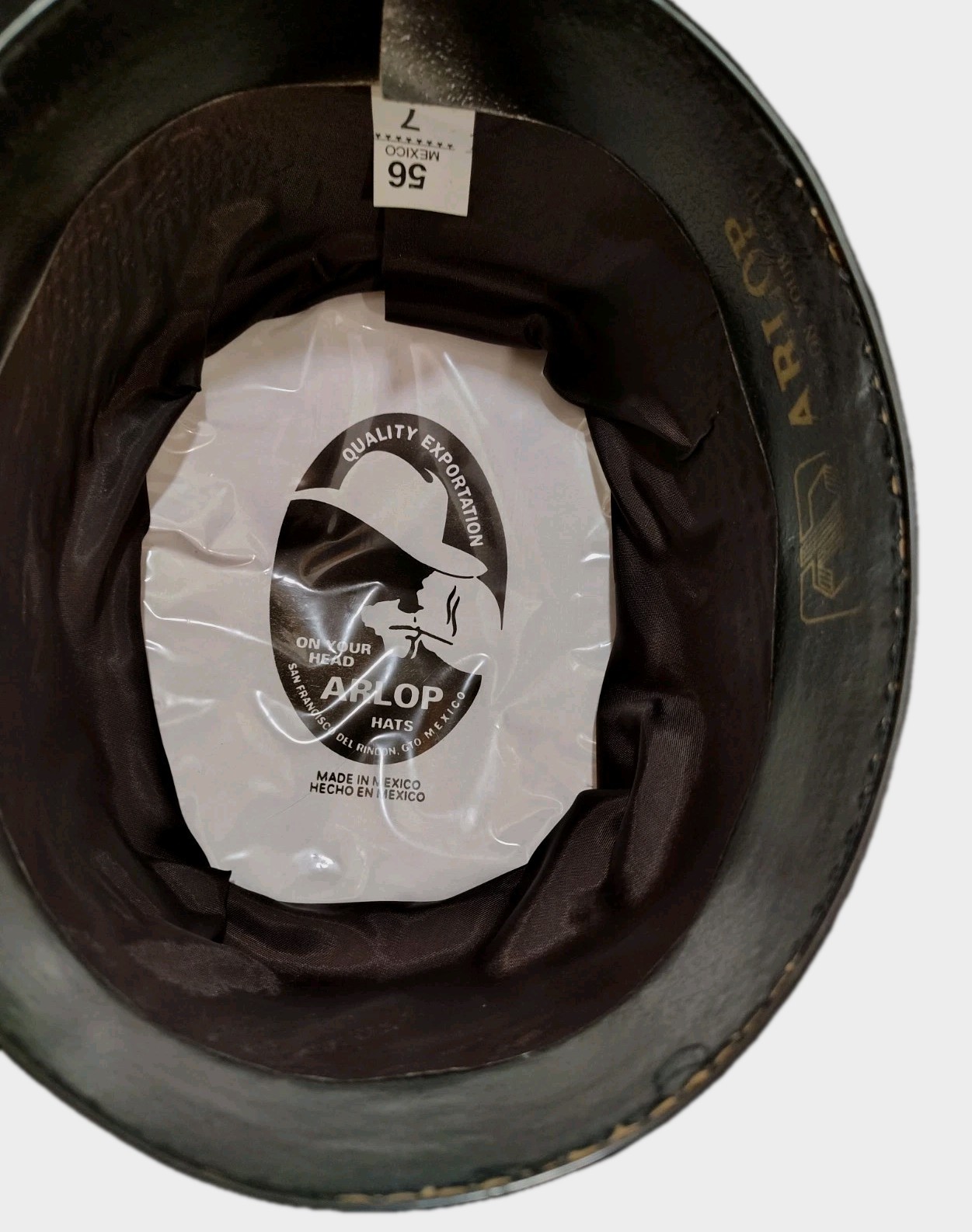 The Mexico Vintage Arlop Black Felt Women's Cowboy Hat is a stylish and lightweight accessory that exudes a Western theme with a solid black color and wide brim. Made from suede felt fabric, this Vintage cowboy hat is perfect for various occasions like parties, casual outings, or workwear. The size 7 hat is designed for unisex adults and features a unique 80s-inspired style, making it a standout piece in any wardrobe. Perfect for adding a touch of vintage flair to your look.