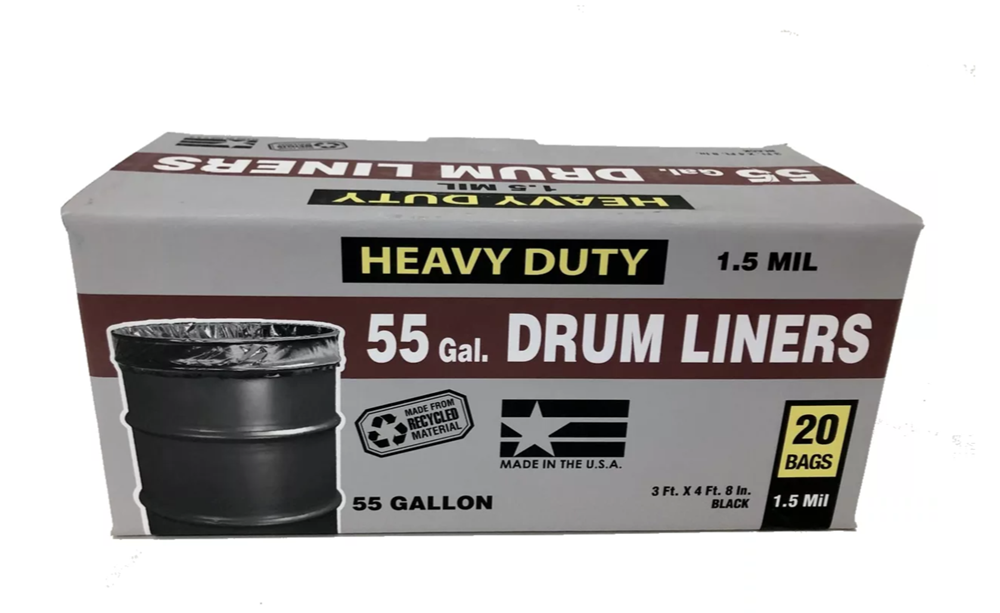 The Revolution Heavy-Duty Drum Liner Trash Bags are great for your yard, garage, shop or storage. Made with recycled material for durability, these drum liner trash bags are ideal for everyday use. The trash bags can hold up to 55 gal. (208.2 L) and come in the classic color black.