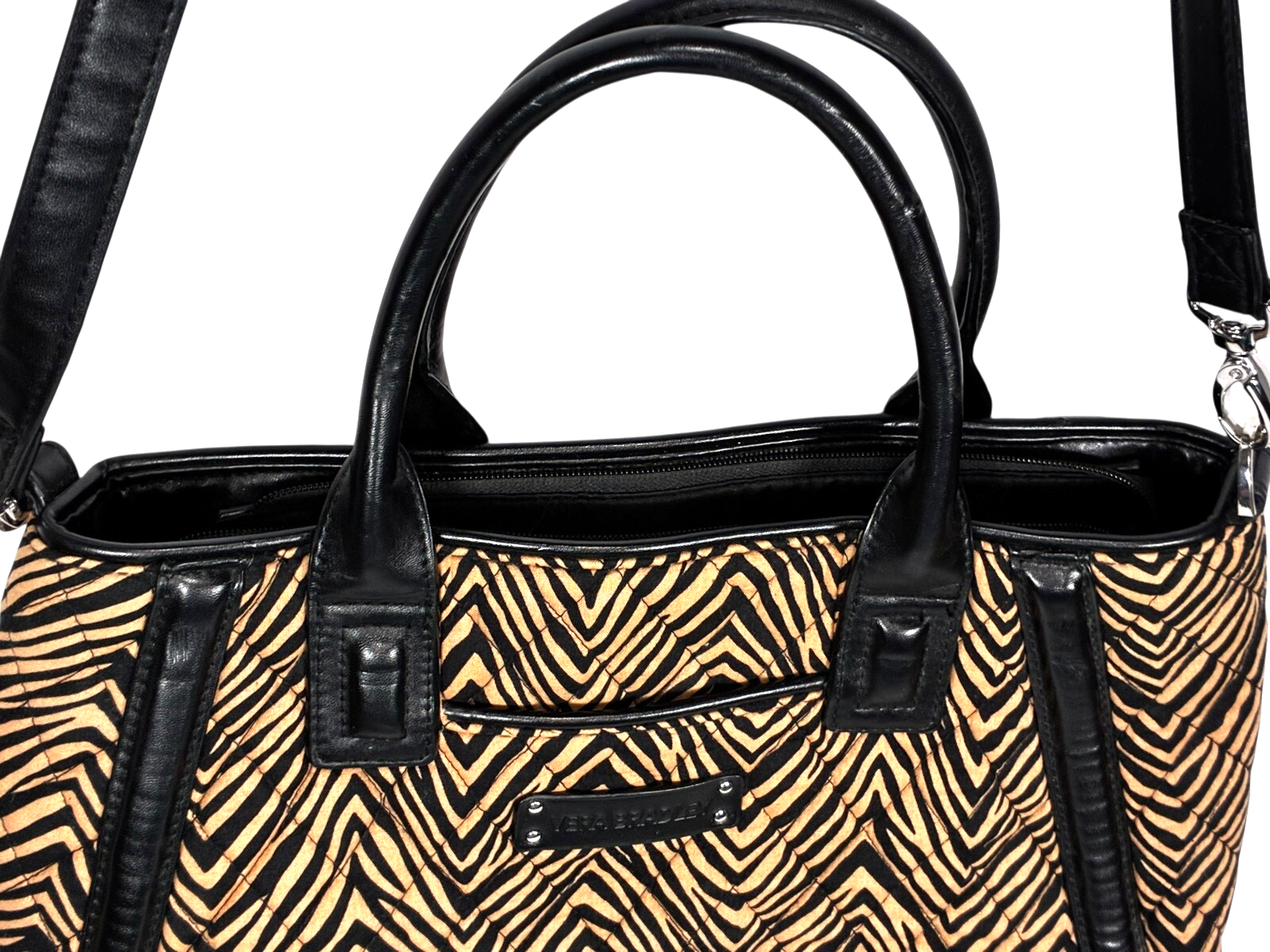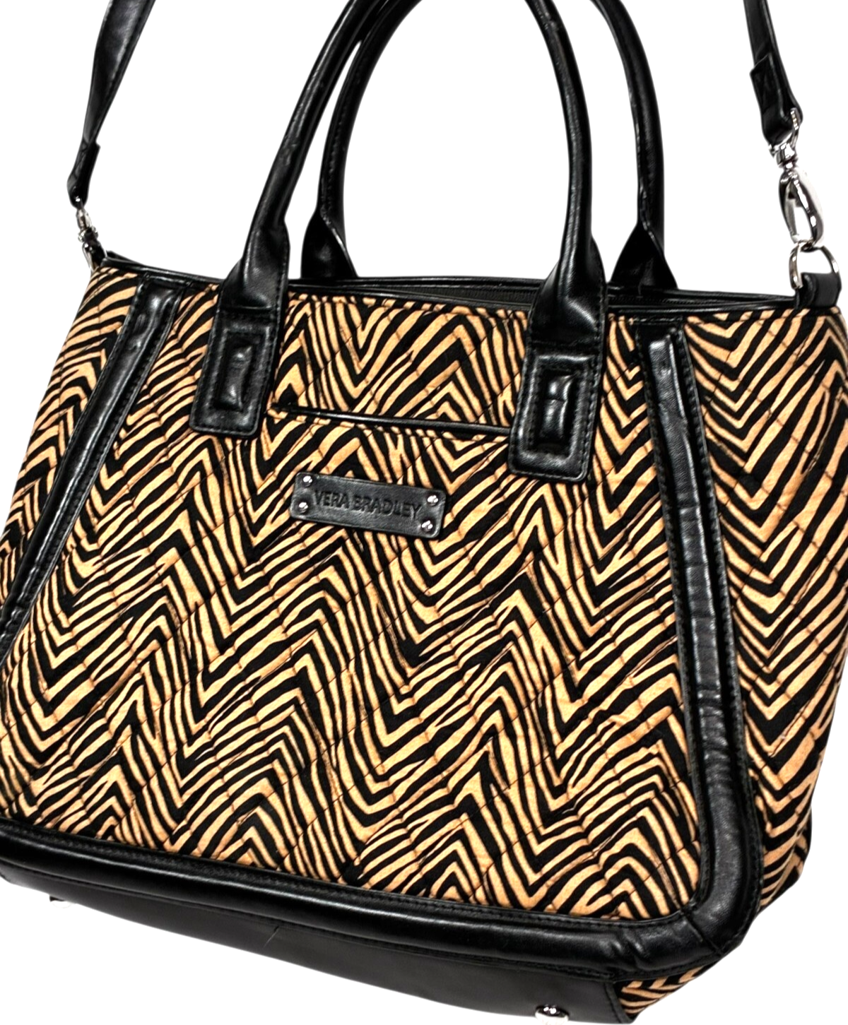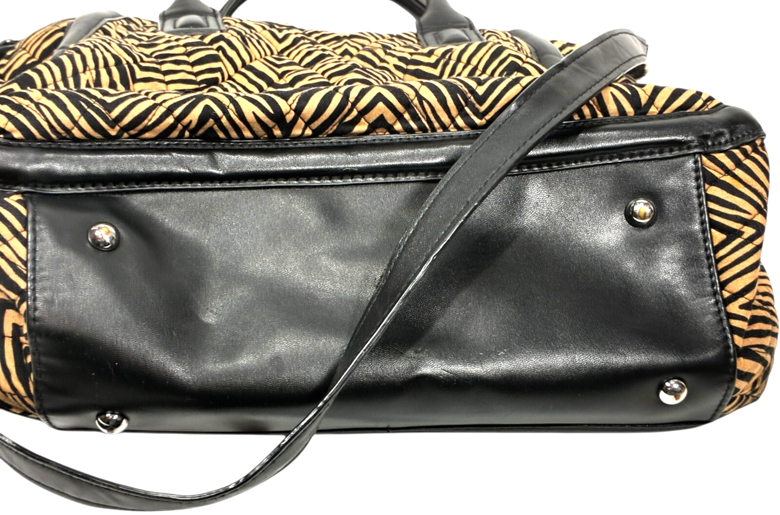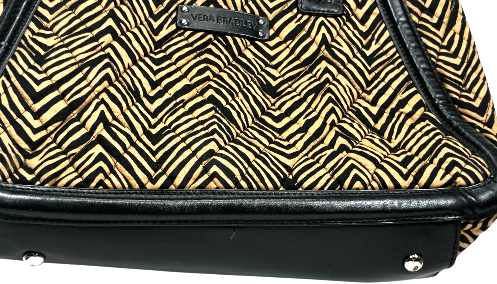 vera bradley quilted zebra print shoulder tote bag black and tan