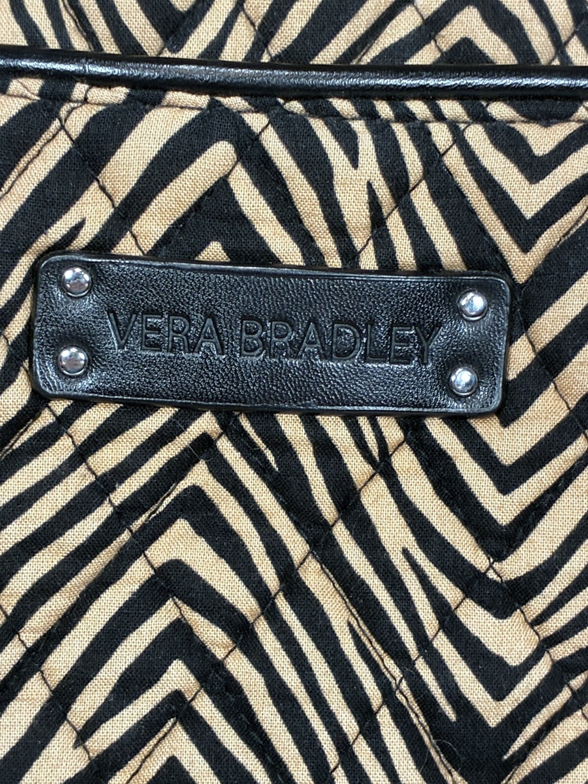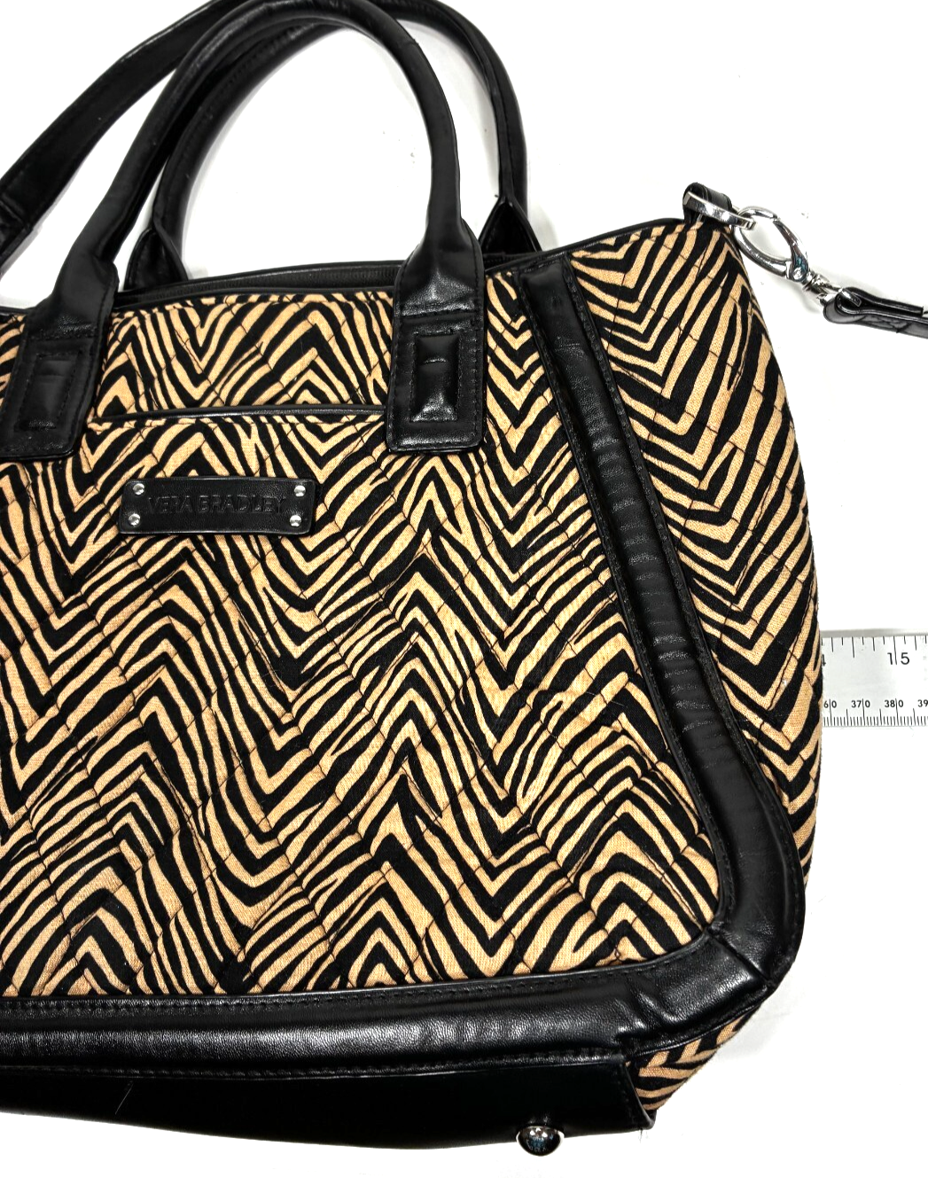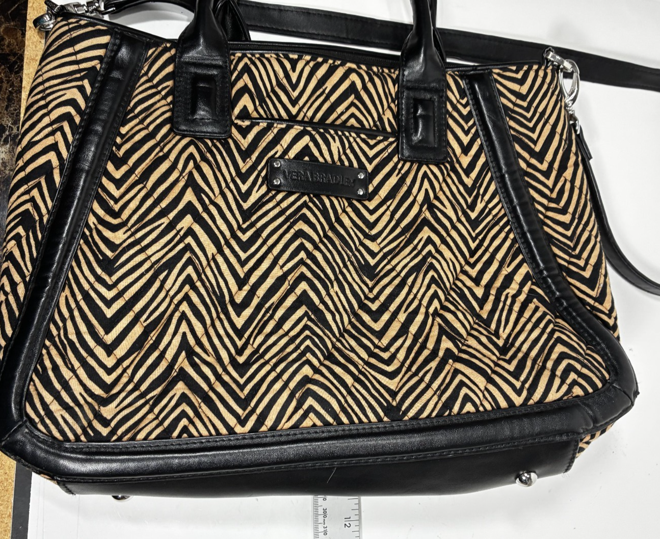 vera bradley quilted zebra print shoulder tote bag black and tan