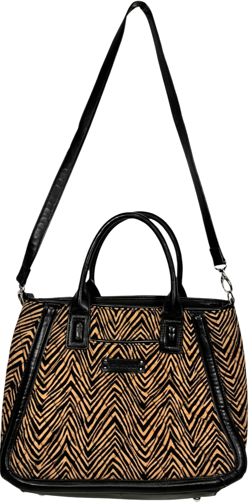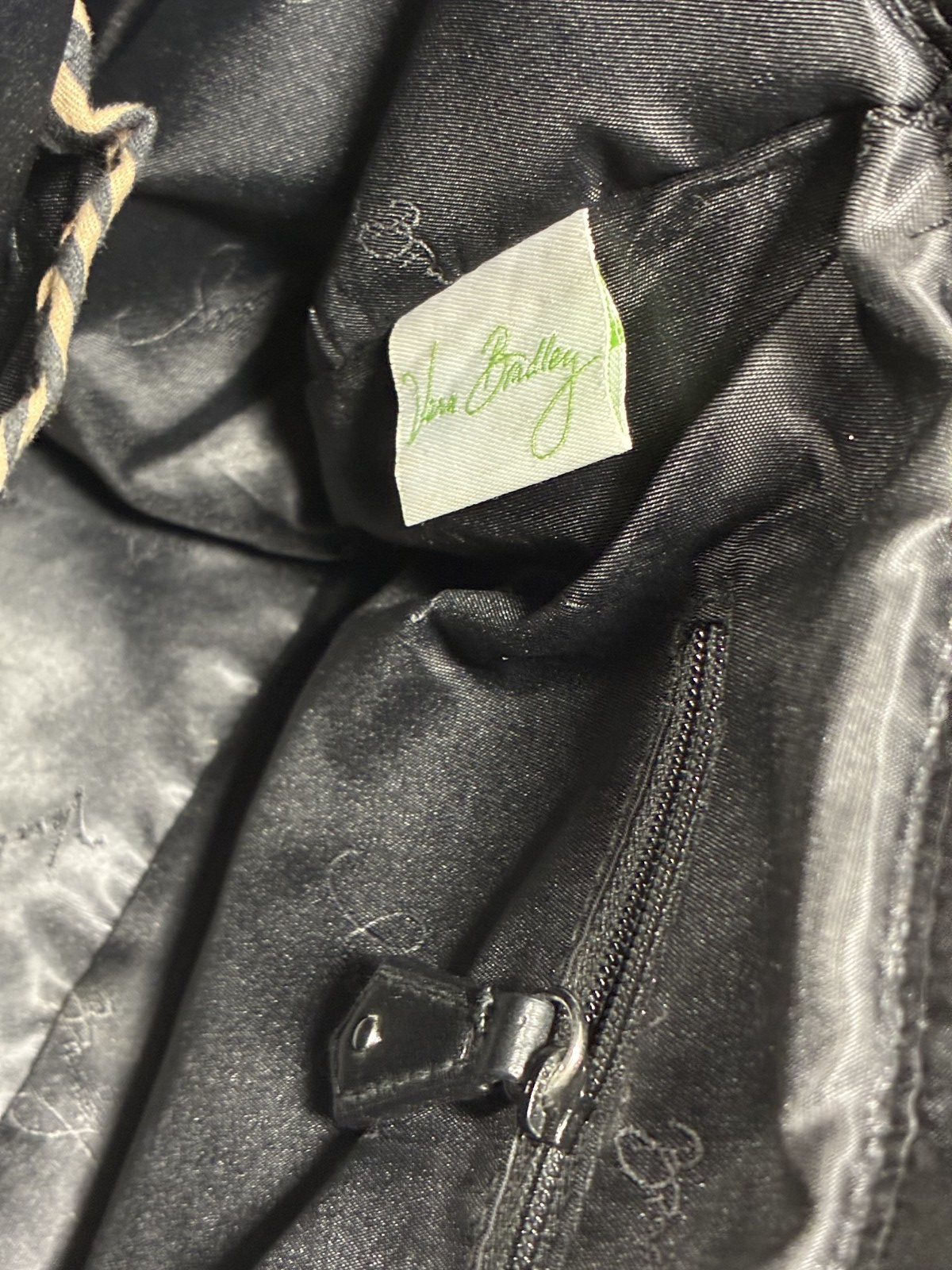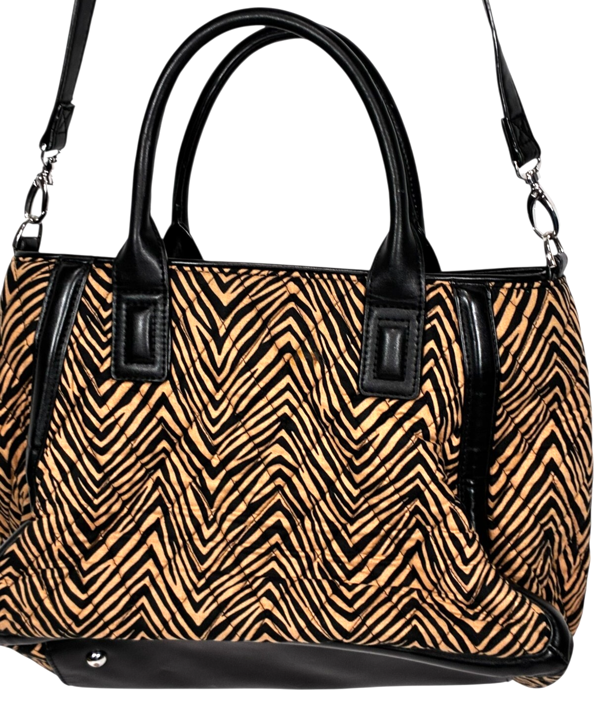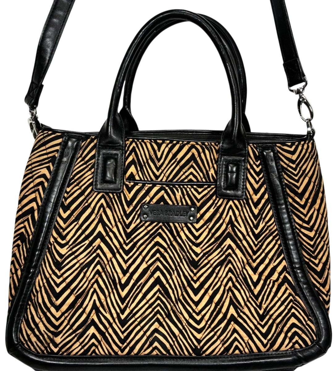 vera bradley quilted zebra print shoulder tote bag black and tan
