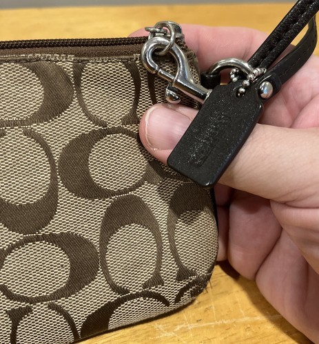 COACH Signature “C” Logo Wristlet Brown With Small Fob Classic Classy Timeless