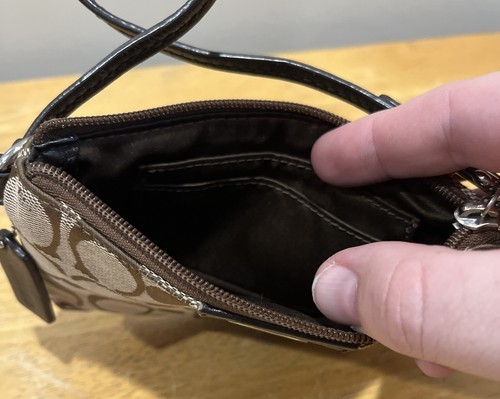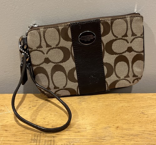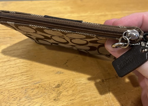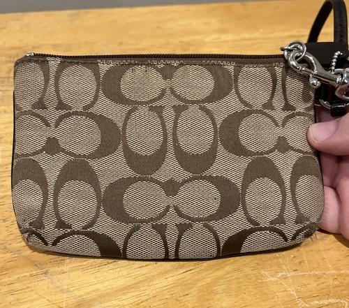 COACH Signature ?C? Logo Wristlet Brown With Small Fob Classic Classy Timeless.