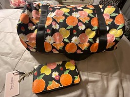 NWT JUICY COUTURE BLACK CITRUS FORBIDDEN FRUIT WEEKEND DUFFLE BAG & WALLET SET