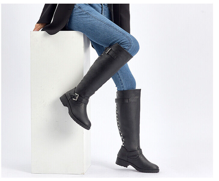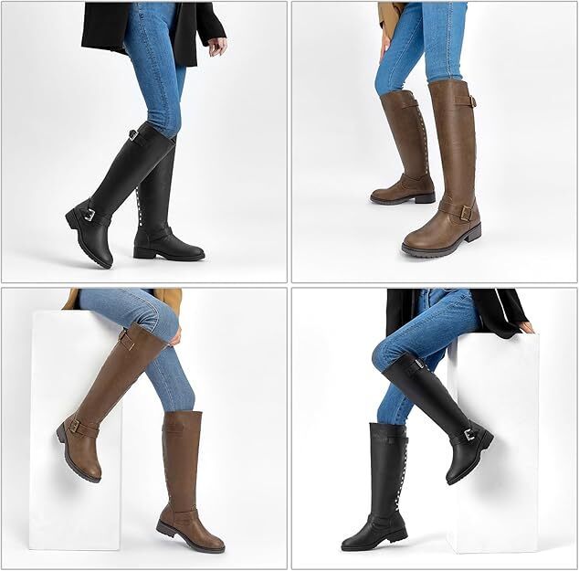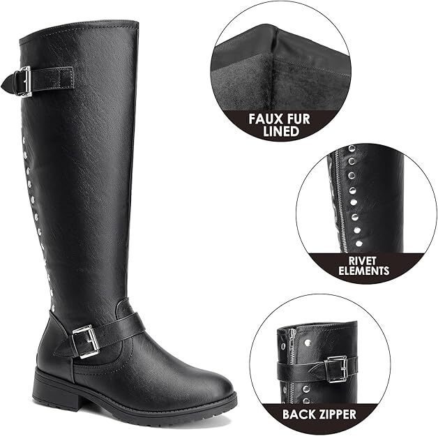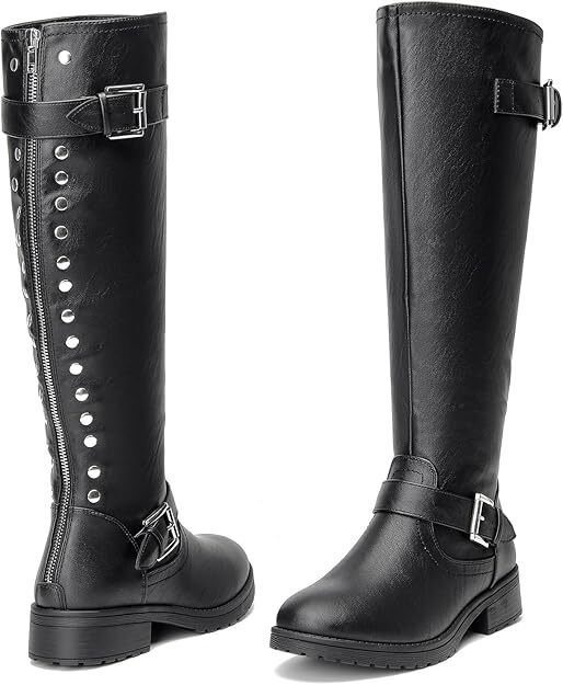 CentroPoint Women's Knee High Boots Size 9.5 | Black Riding Boots with Buckle Zipper | Waterproof Synthetic Leather | Round Toe Boots | Low Block Heel Fashion Boots for any season| Comfortable Fabric Lined Boots with Padded Insole | Casual Flat Heel Boots with Easy Zip Closure | Women's Black Knee High Boots Size 9.5 New In Box. Box may be damaged item is not.