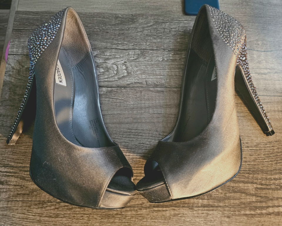Steve Madden Grey Peeptoe Playy-R Rhinestone Embellishe Stiletto Heels Size 9.5M