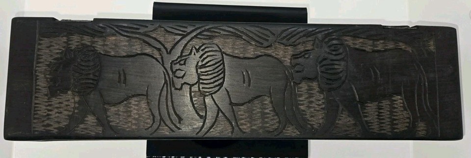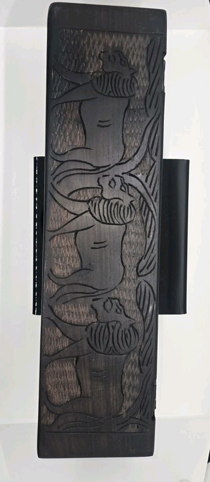 Antique Bao Mancala Traditional African Board Game, Hand Carved Fine Art, Lions