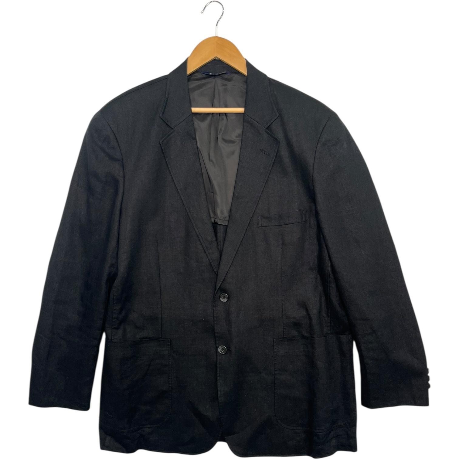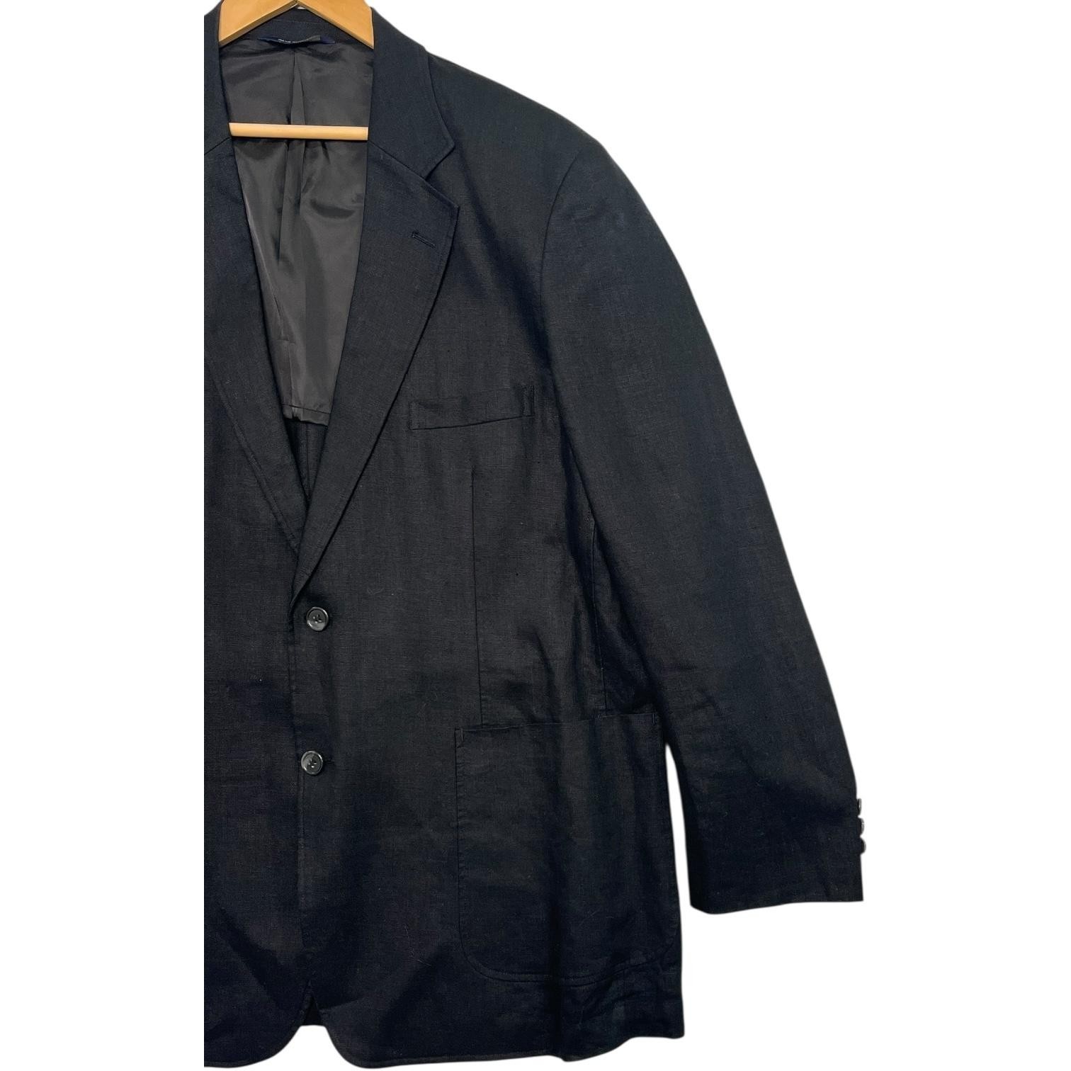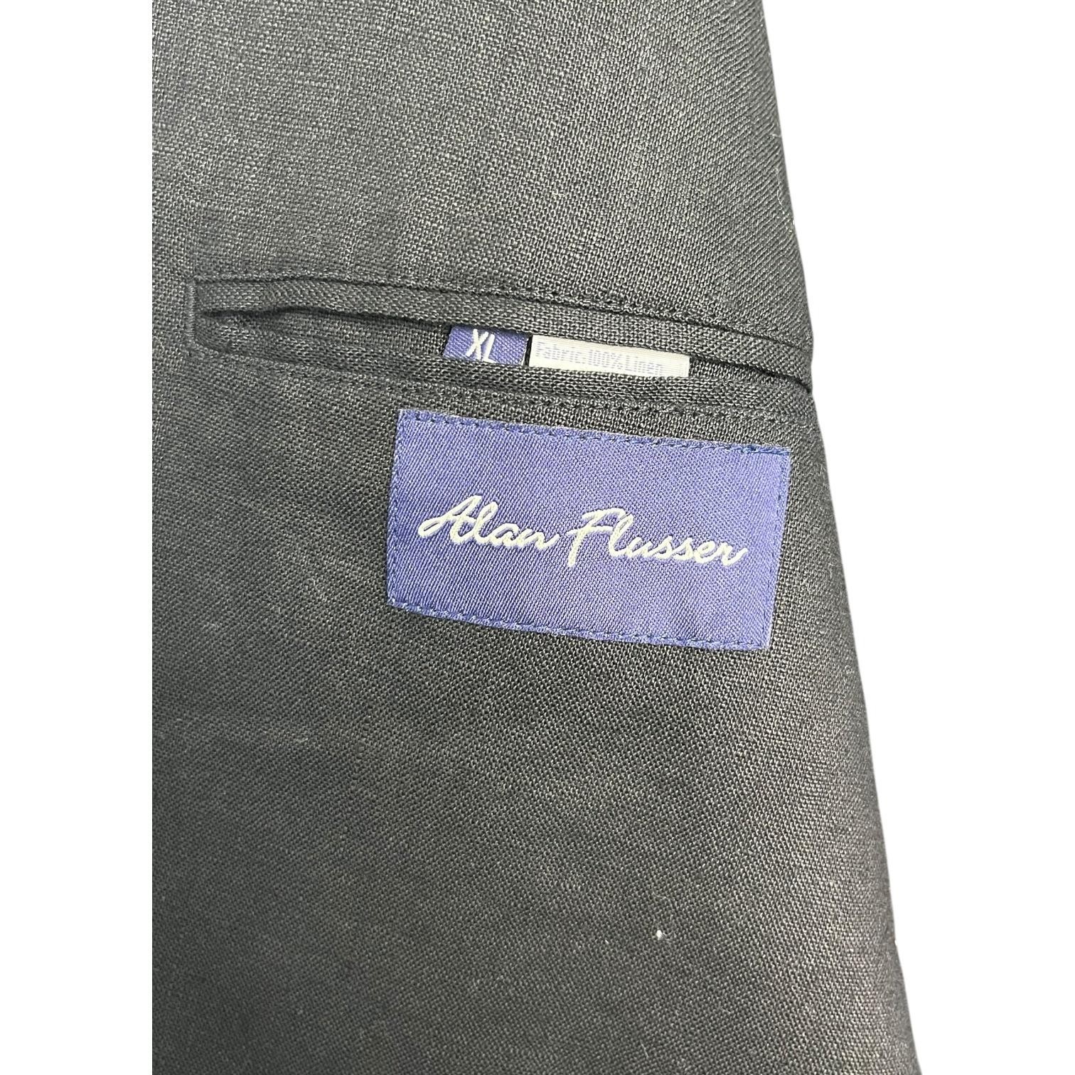 Alan Flusser Blazer Jacket Mens XL Black Linen 2 Button Notch Lapel Sport Coat