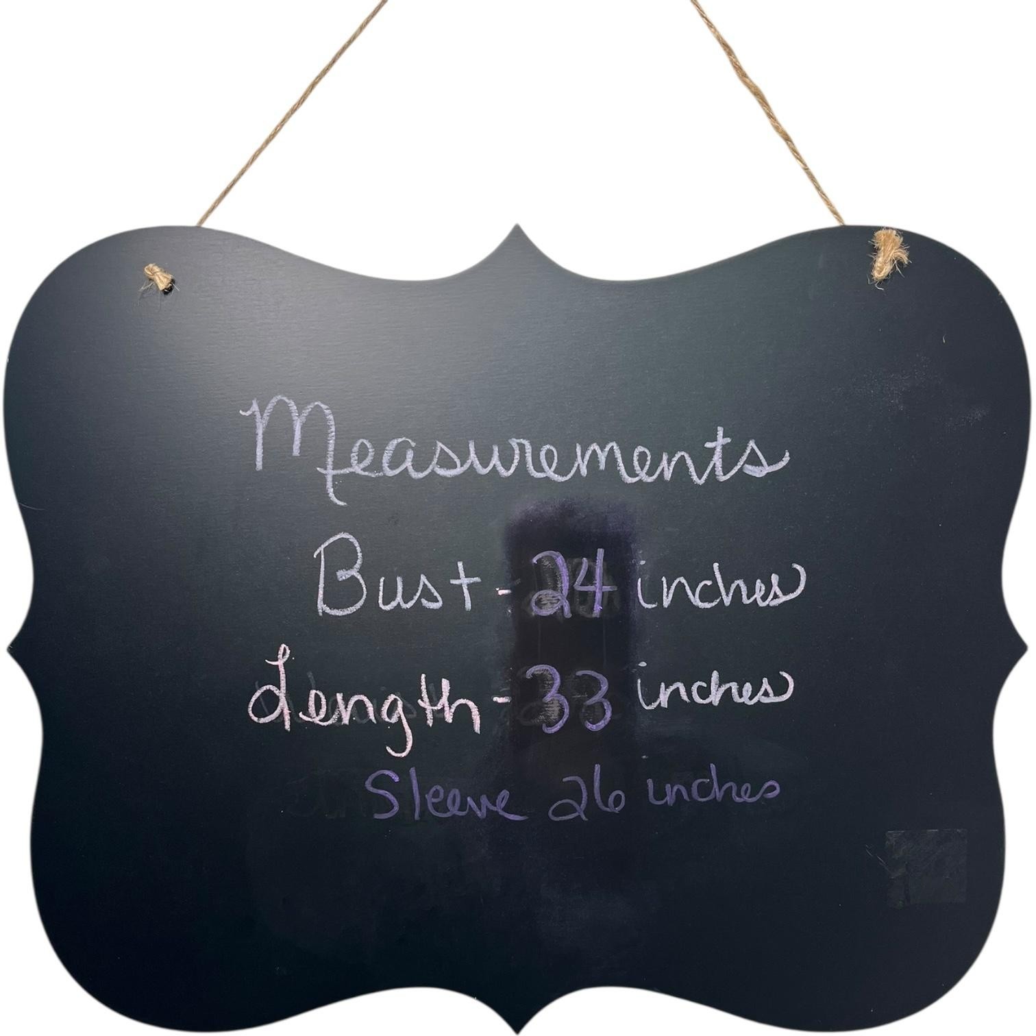 Approximate measurements from photos: Bust 24 inches; Length 33 inches; Sleeve 26 inches