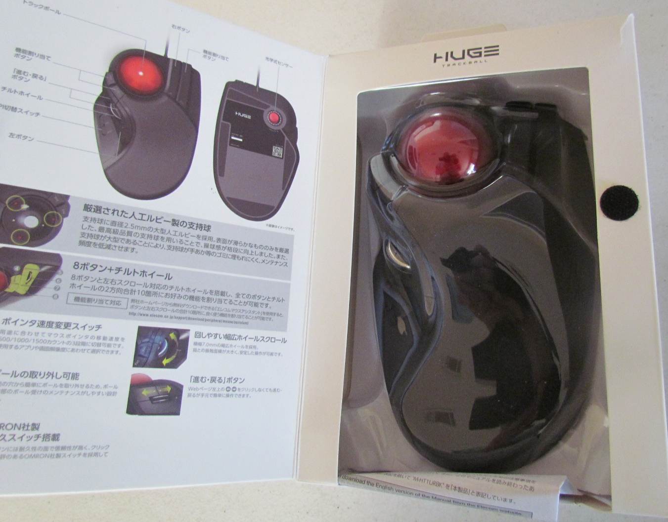 ELECOM HUGE Trackball Mouse Wired Finger Control 8-Button - M-HT1DRBK