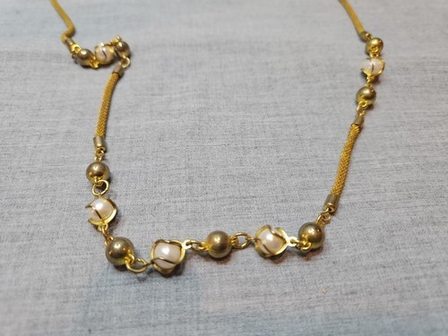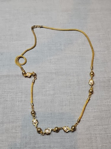 Gold Tone Rope Style Necklace, Silver/Pearl Costume Jewelry Beads, 32'' Vintage