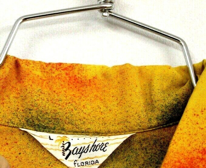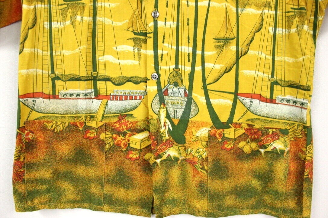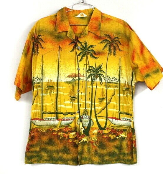 VTG 1960s HAWAIIAN SHIRT BY BAYSHORE 100% COTTON SZ L Sailboat Palm Tree