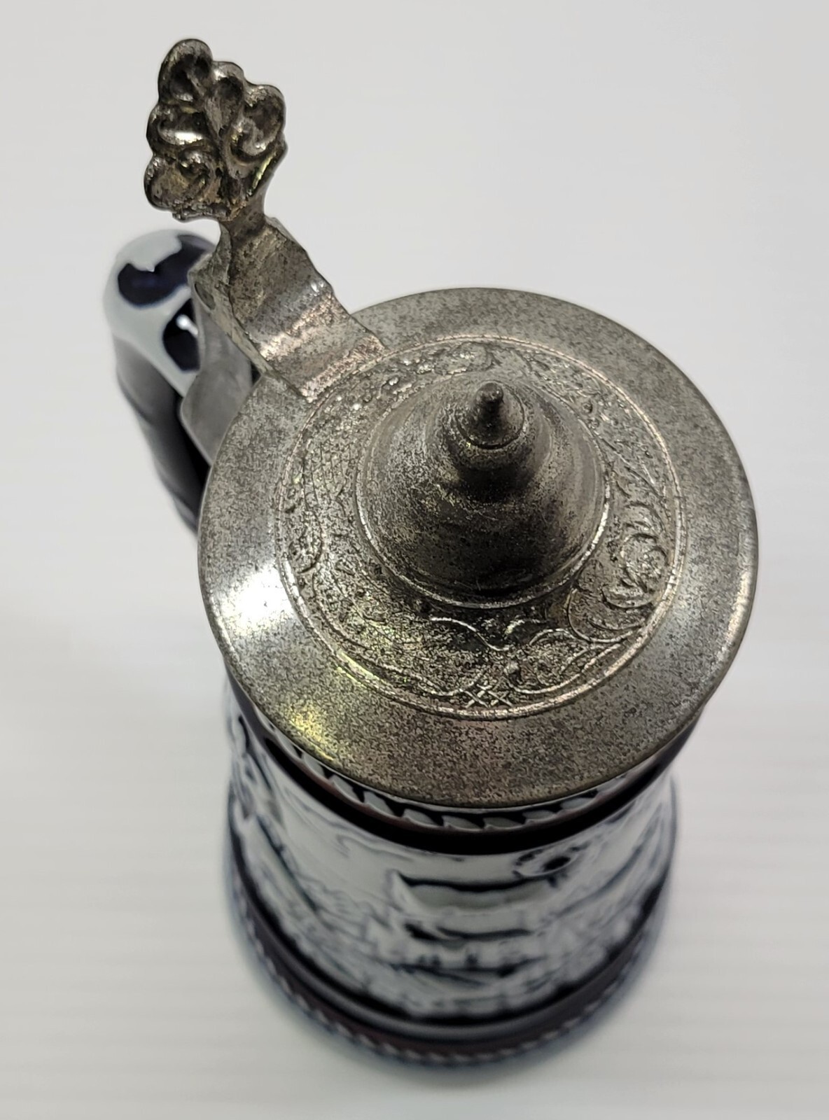 Stein is in overall good vintage condition with some slight tarnish to the metal lid due to age.