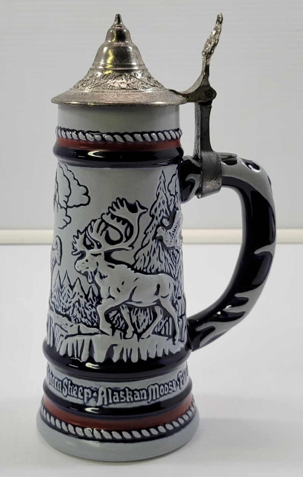 1976 AVON Collectible Beer Stein with Lid Rocky Mountain Wildlife Made in Brazil