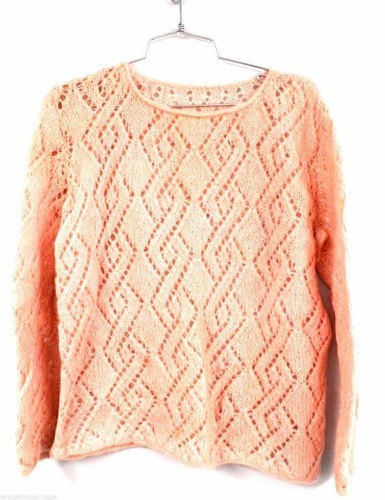VTG 60s Handknit Fuzzy Mohair Peach Sweater Open Weave L