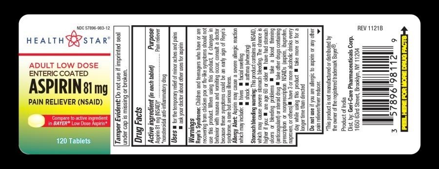 Health Star Adult Low Dose Enteric Coated Aspirin 81 mg 120 Ct Compare to Bayer