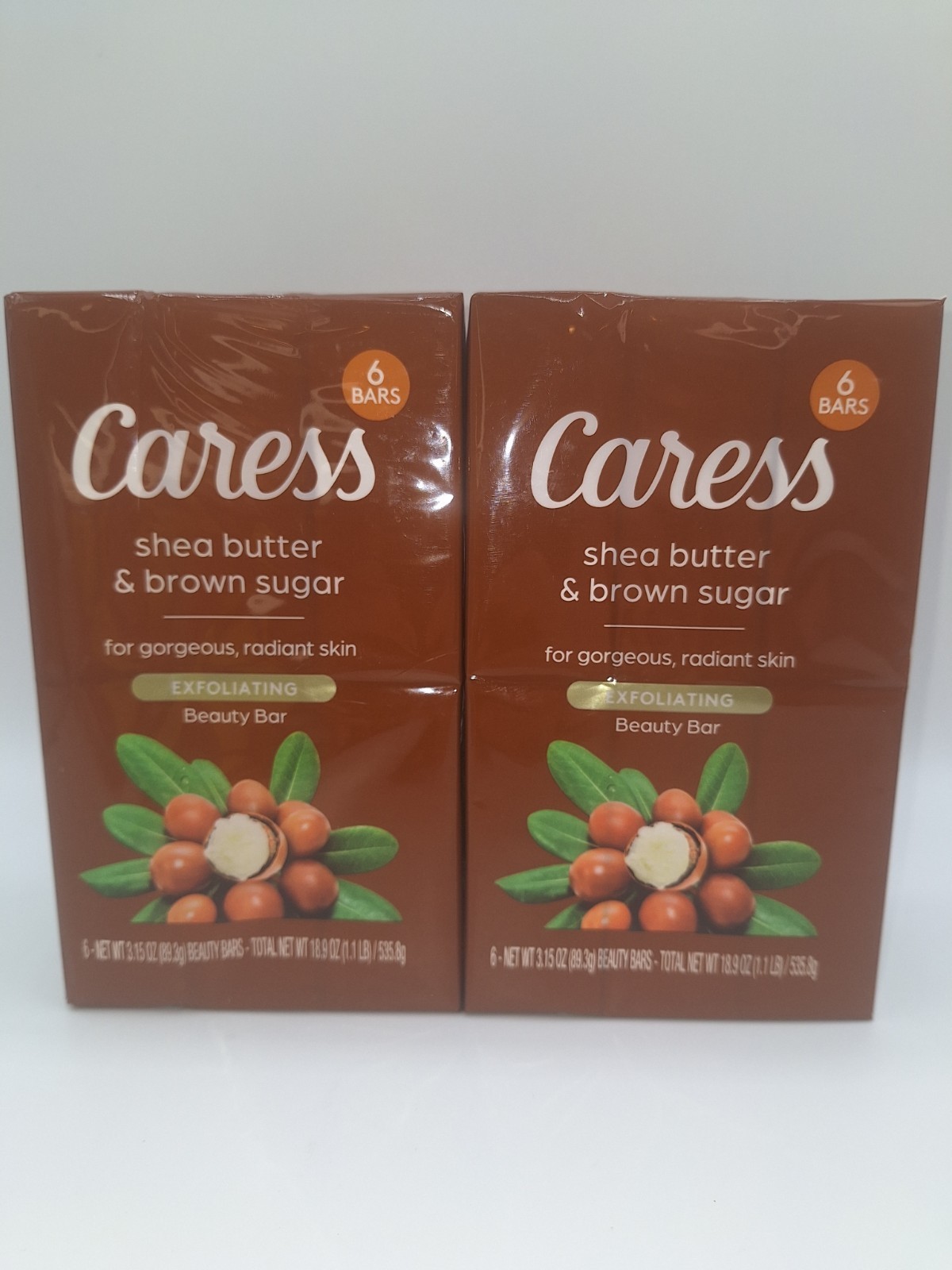 (12) Caress Shea Butter Brown Sugar Bar Soap Exfoliating Beauty Bars 3.15 Oz each bar
